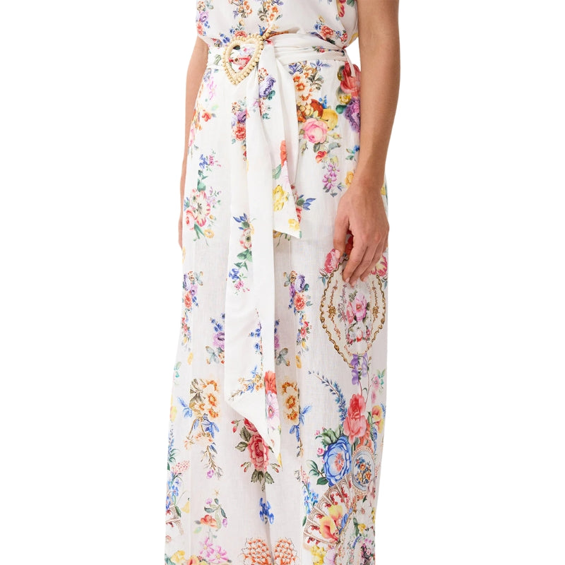 The I Left My Heart In Granada Scarf Belt Wide Leg Pant is a handcrafted silhouette designed by our in-house artisans. Envisioned in an exclusive limited edition print, this wide leg linen pant is cut high waisted with an elasticated back panel for effortless wear. It features intricate embroidery and a removable scarf belt for decadent detail, while side seam pockets and front zipper offer versatility.