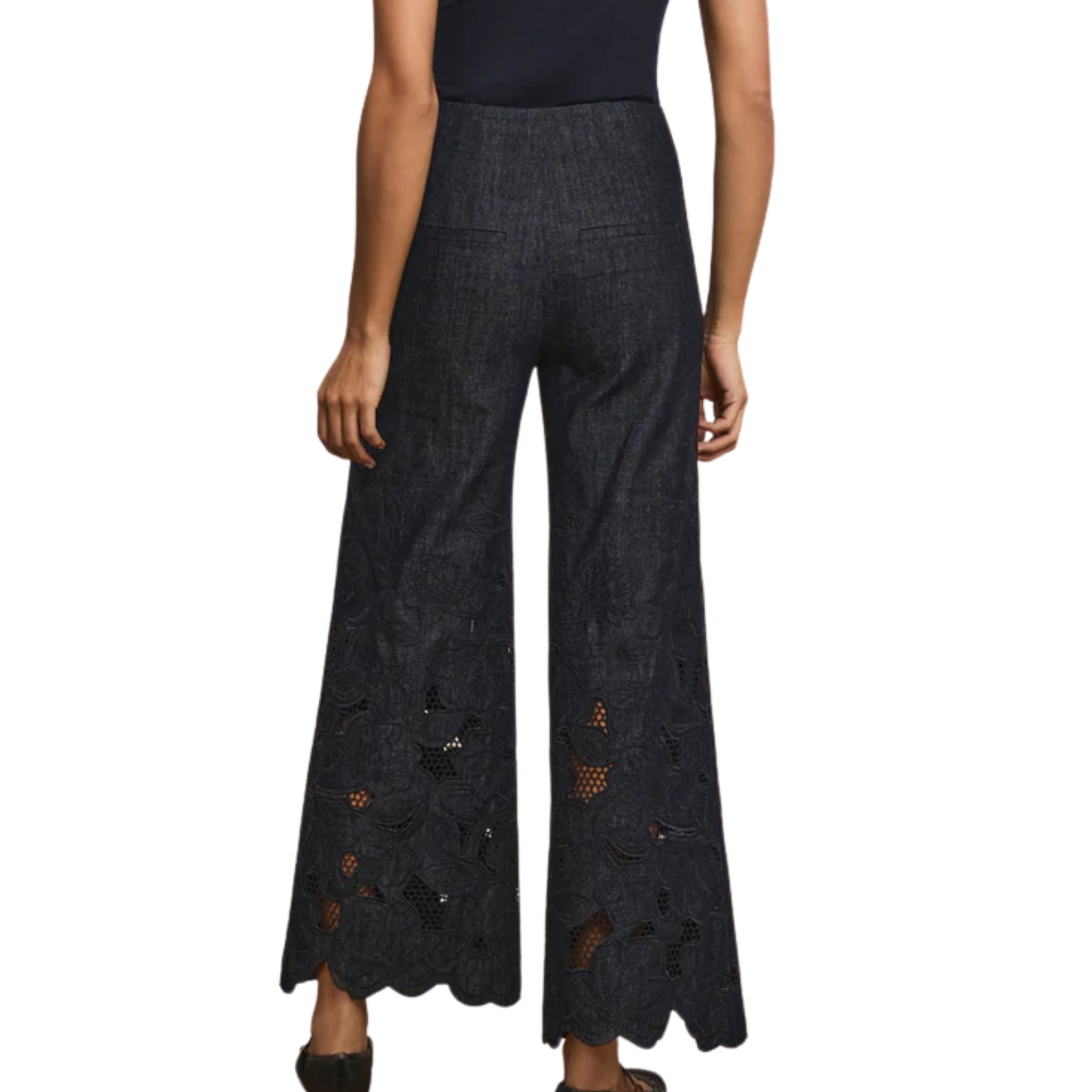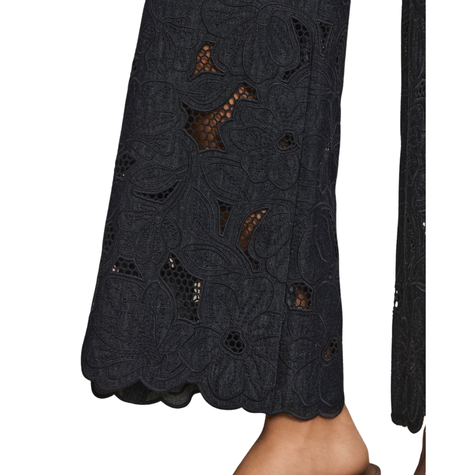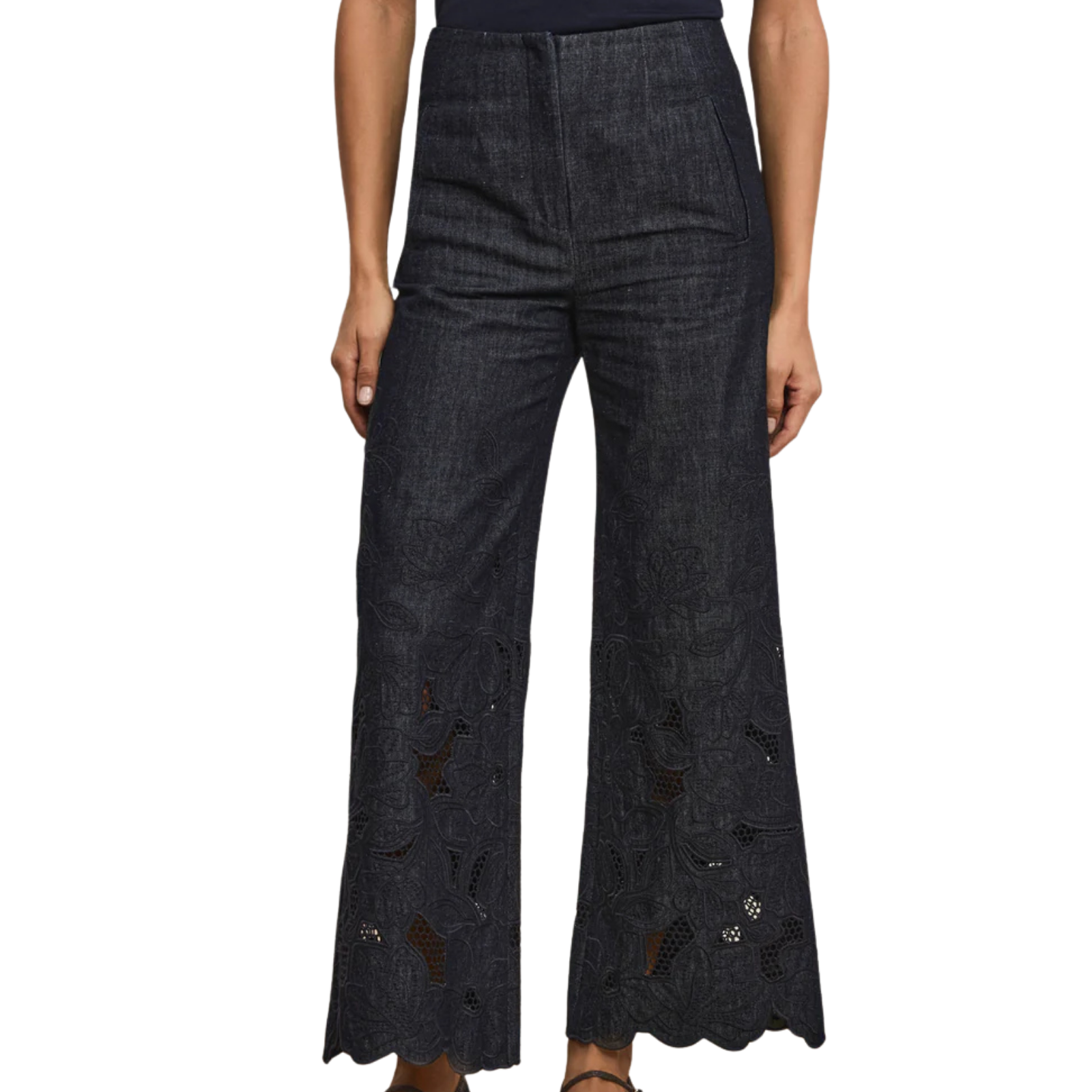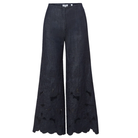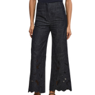 Expertly crafted from premium cotton chambray, the Osborne eyelet pant is defined by intricate floral eyelet embroidery. Designed with a Hollywood waist and double darting, its wide-leg silhouette is exceptionally flattering. Slip pockets and back welt pockets add functionality, while a scalloped hem provides a feminine finish. Pair with the matching Mirielle top for a fresh take on set dressing.