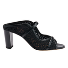 The Norah mule pairs delicate lace mesh with smooth leather straps. Grounded by a sculpted 70mm block heel, it brings versatility to gowns and tailoring alike.