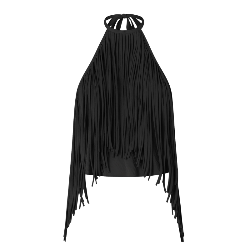 - Features a halterneck that leaves the back open and closes at the back of the neck with two soft ribbons to be tied