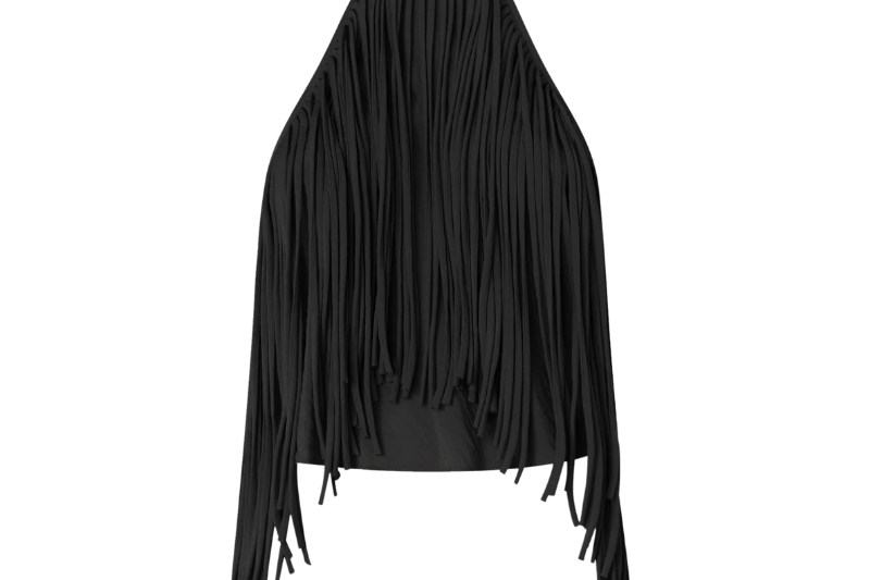- Long tubular fringes, made of lightweight cotton voile fabric, which outline the hem, that naturally follow your movements.