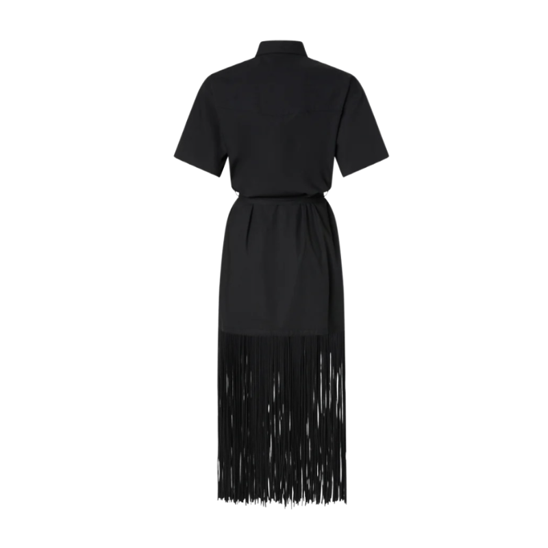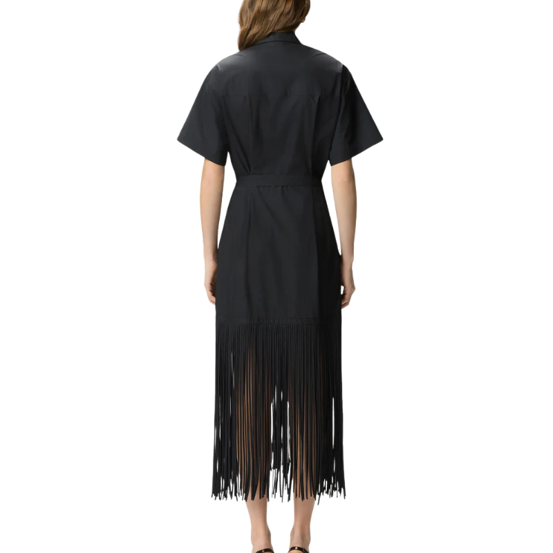 PINKO- Long Shirt Dress W/ Fringing and Metallic details