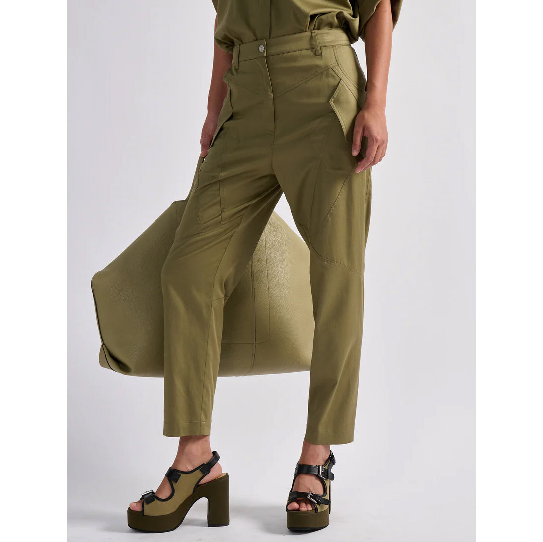 Barbara Bui- Khaki Mercerised Satin Cargo Trousers