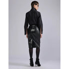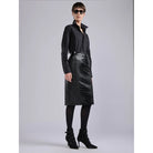 Ultra-feminine, the pencil skirt lengthens to the knee with a sensual and rock aesthetic in vegan leather embossed with crocodile pattern. Attentive to comfort and the style of the wardrobe she envisions season after season, Barbara Bui has added two Italian pockets to this black lined skirt. For endless legs, pair this pencil skirt with heeled boots. Worn high on the waist with a black poplin shirt, this irresistible skirt creates a monochromatic total look perfect for the office and evening.