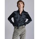 Expected in every collection in its new color palette, our silk satin shirt has become a signature piece in the Barbara Bui wardrobe. Made in a flattering straight cut, this pure silk shirt features elongated cuffs designed to be revealed by the sleeve of a suit jacket. On its hidden placket, it is accessorized with the house’s signature piercing jewelry, while the fine removable tie, secured with a button at the back of the collar, can be replaced with a silk tie available in all the shirt's color options. A versatile and comfortable piece with a decidedly contemporary chic.