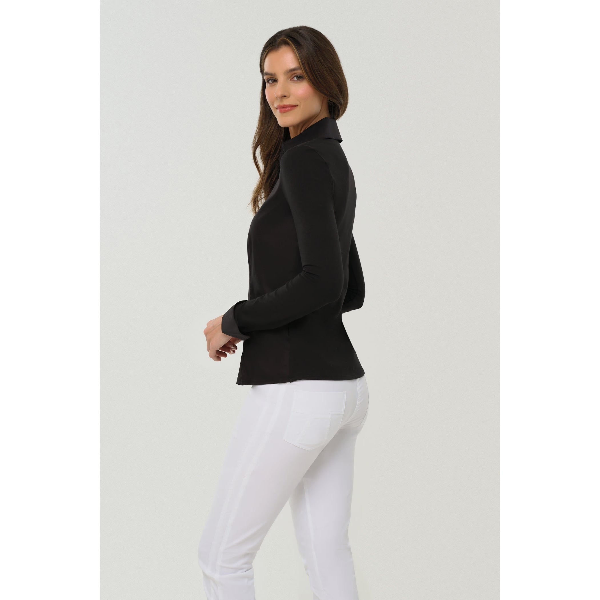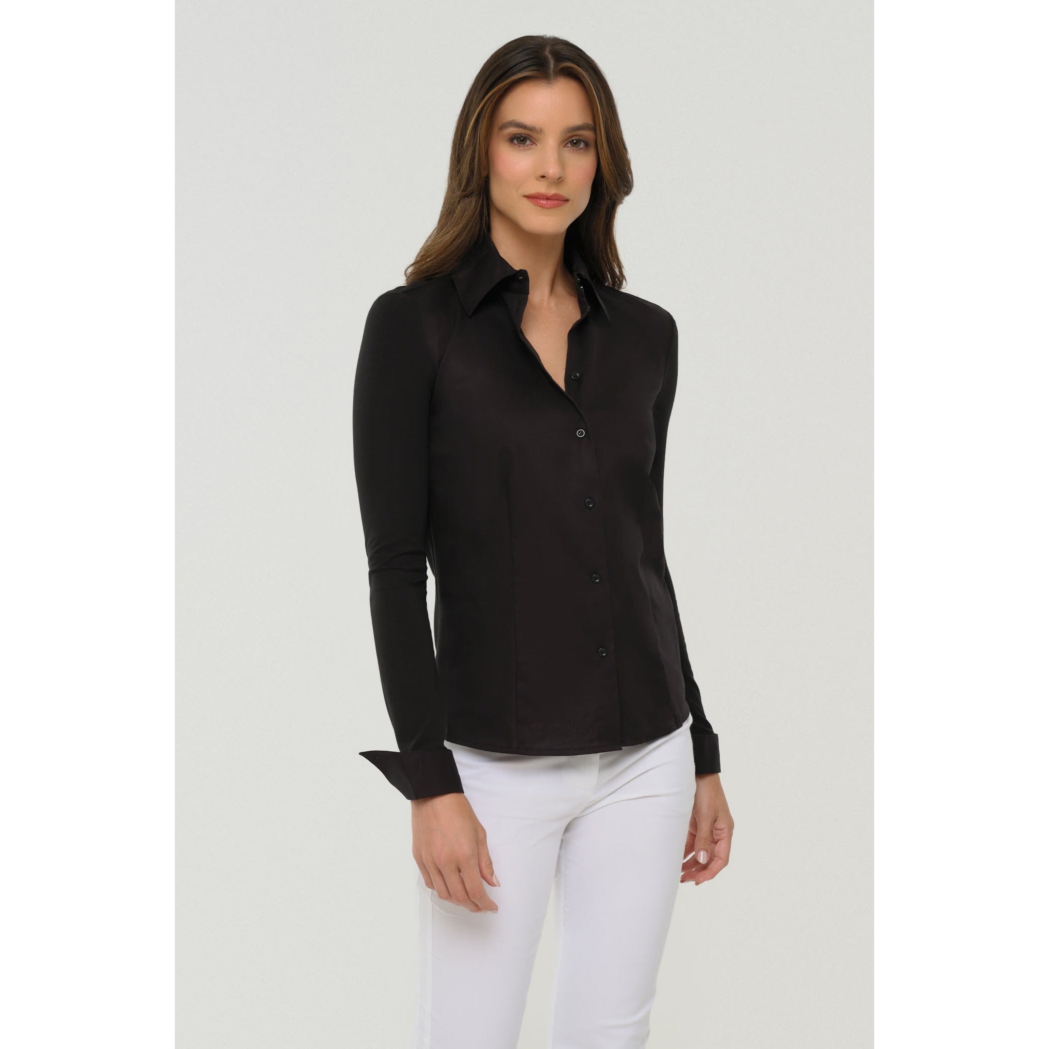 Meet the perfect elevated take on the classic button-up shirt. This stylish women's button-up shirt features a modern slim fit silhouette and flattering designer seaming. A timeless button front-closure and bold menswear-inspired collar add a sophisticated feel to this must-have piece. Crafted using Anatomie's signature wrinkle-resistant fabrics, this essential women's top is perfect for slipping on with any look, from casual and cool to polished and professional.