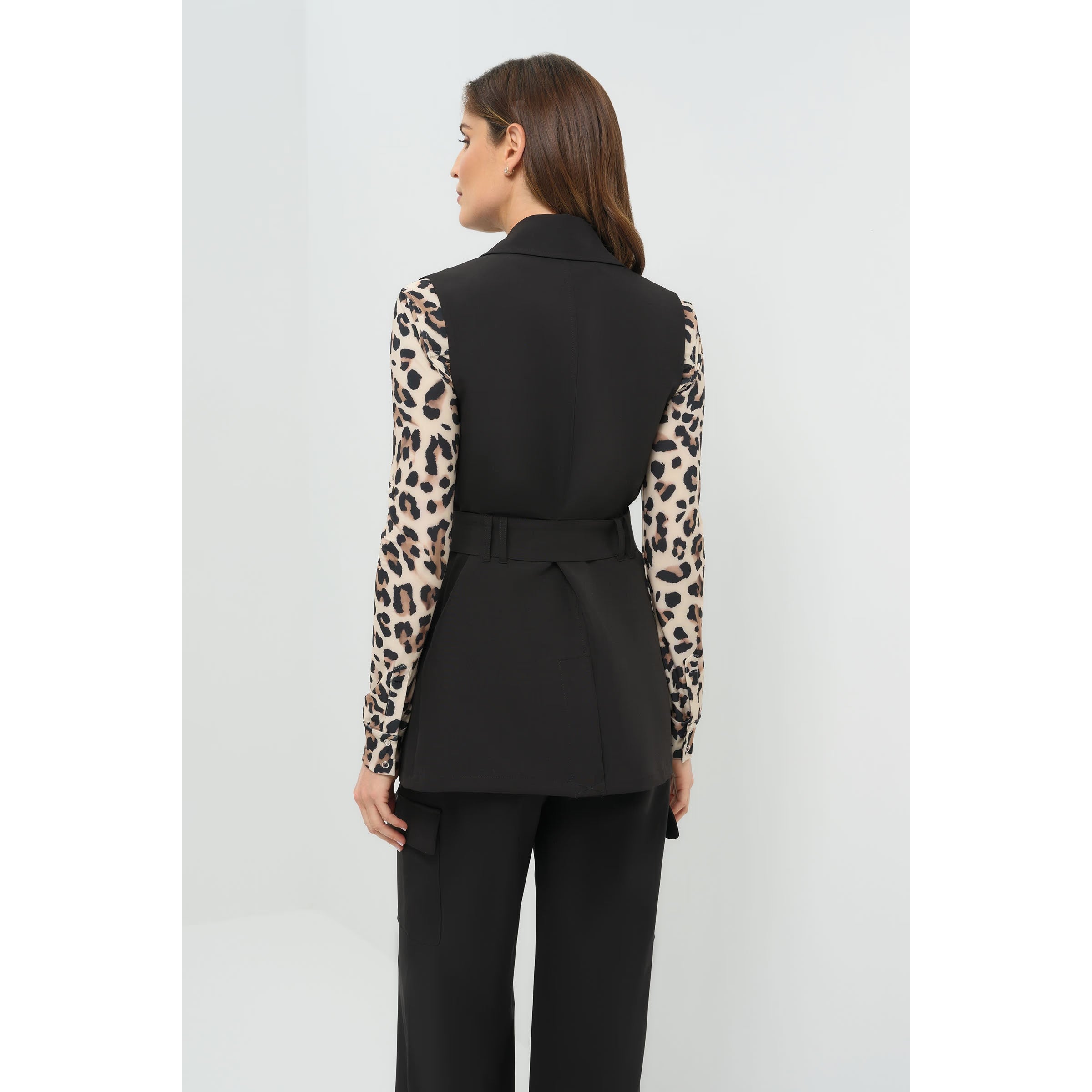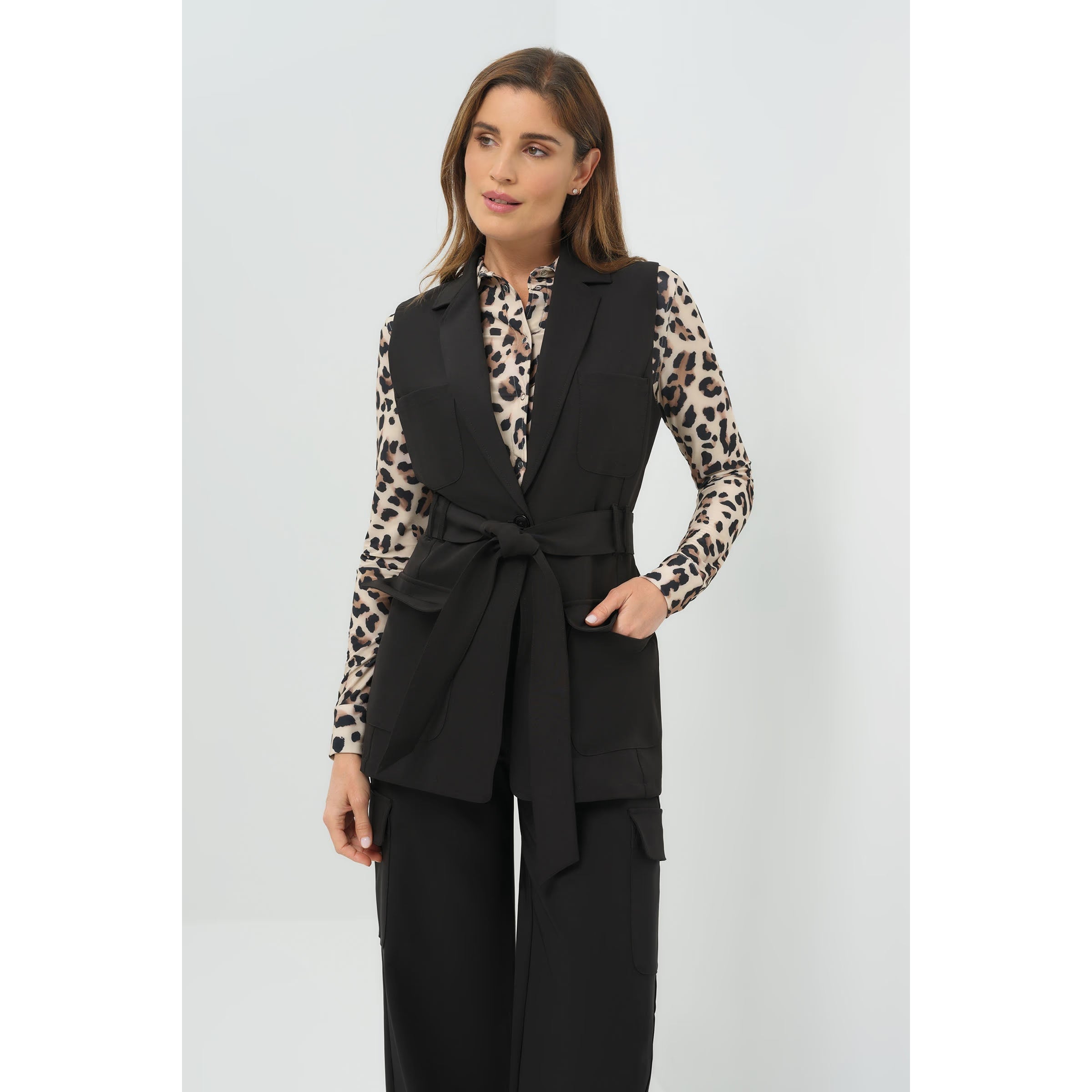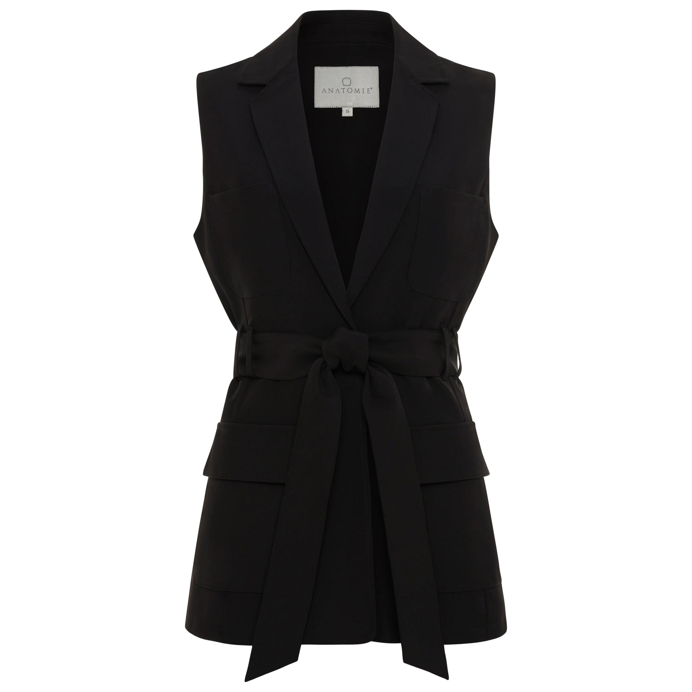 Elevate your wardrobe with the Alyssa Belted Utility Vest in classic black. Designed with a tailored silhouette and a detachable belt, this vest combines functionality with refined style. Perfect for layering, it adds a polished edge to any outfit while offering practical utility details for everyday wear.