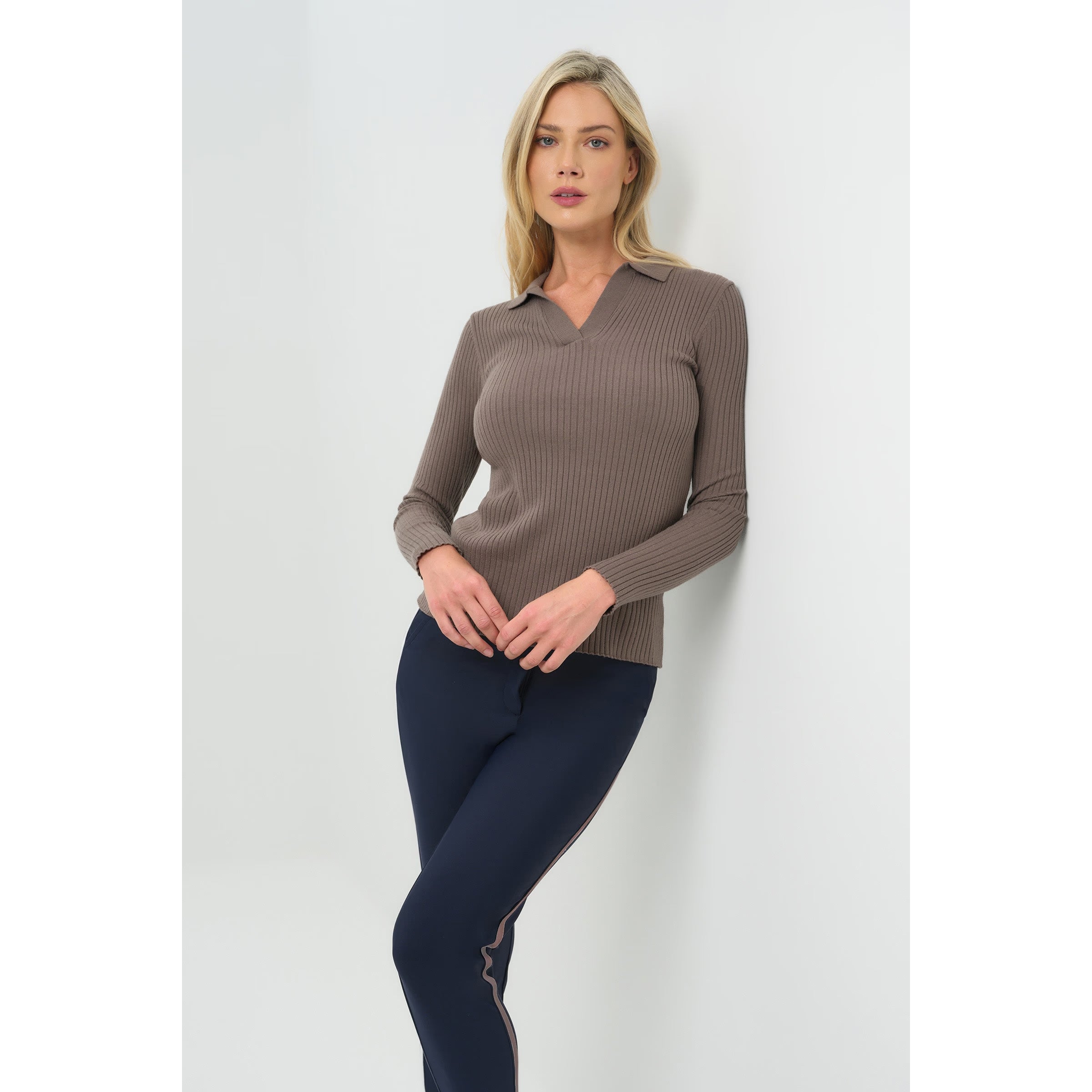 The Georgie Rib Sweater Knit Collared Top is a refined fall essential, made from exceptionally soft ribbed pima cotton. Its sleek collared detail adds a subtle sophistication, turning this comfortable basic into a polished layer perfect for the season.
