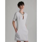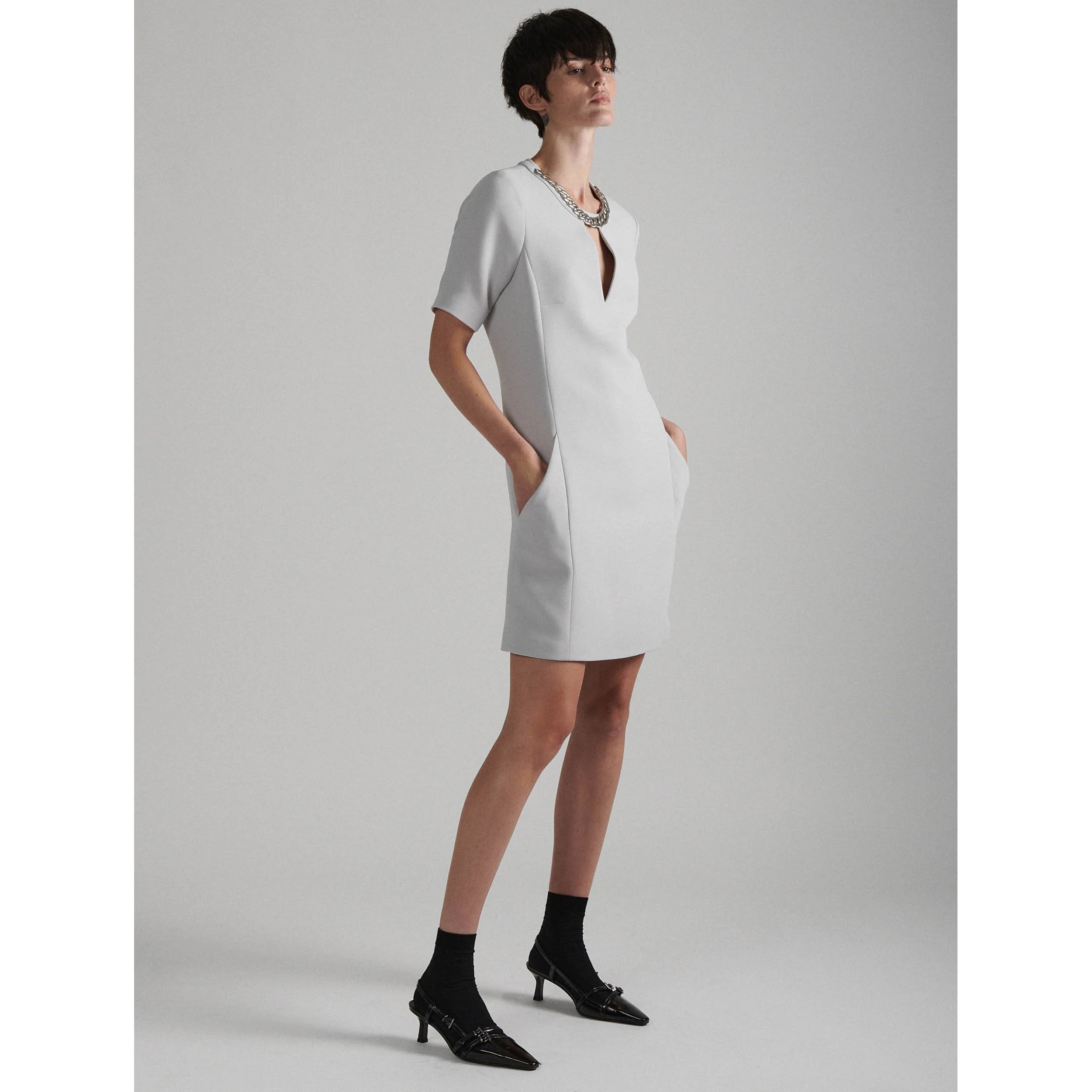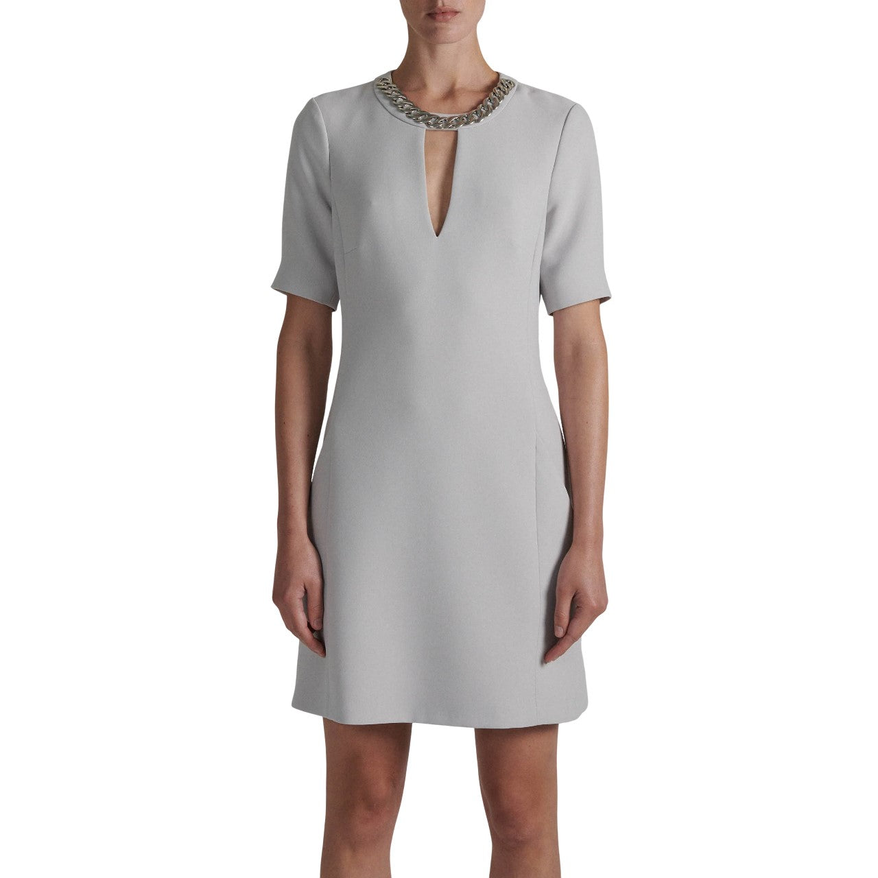 Barbara Bui- Pearl Grey Crepe Dress with Jewel Neckline