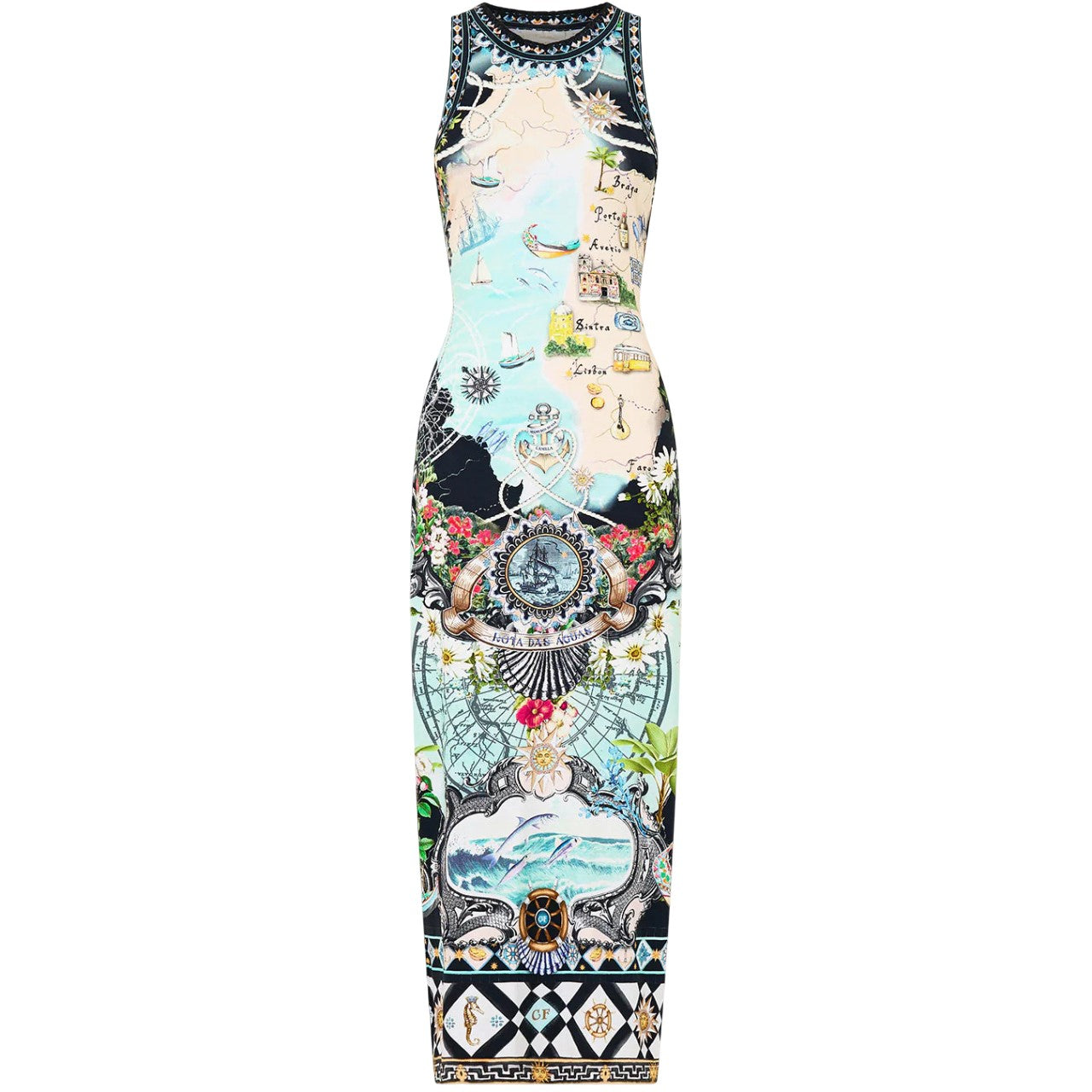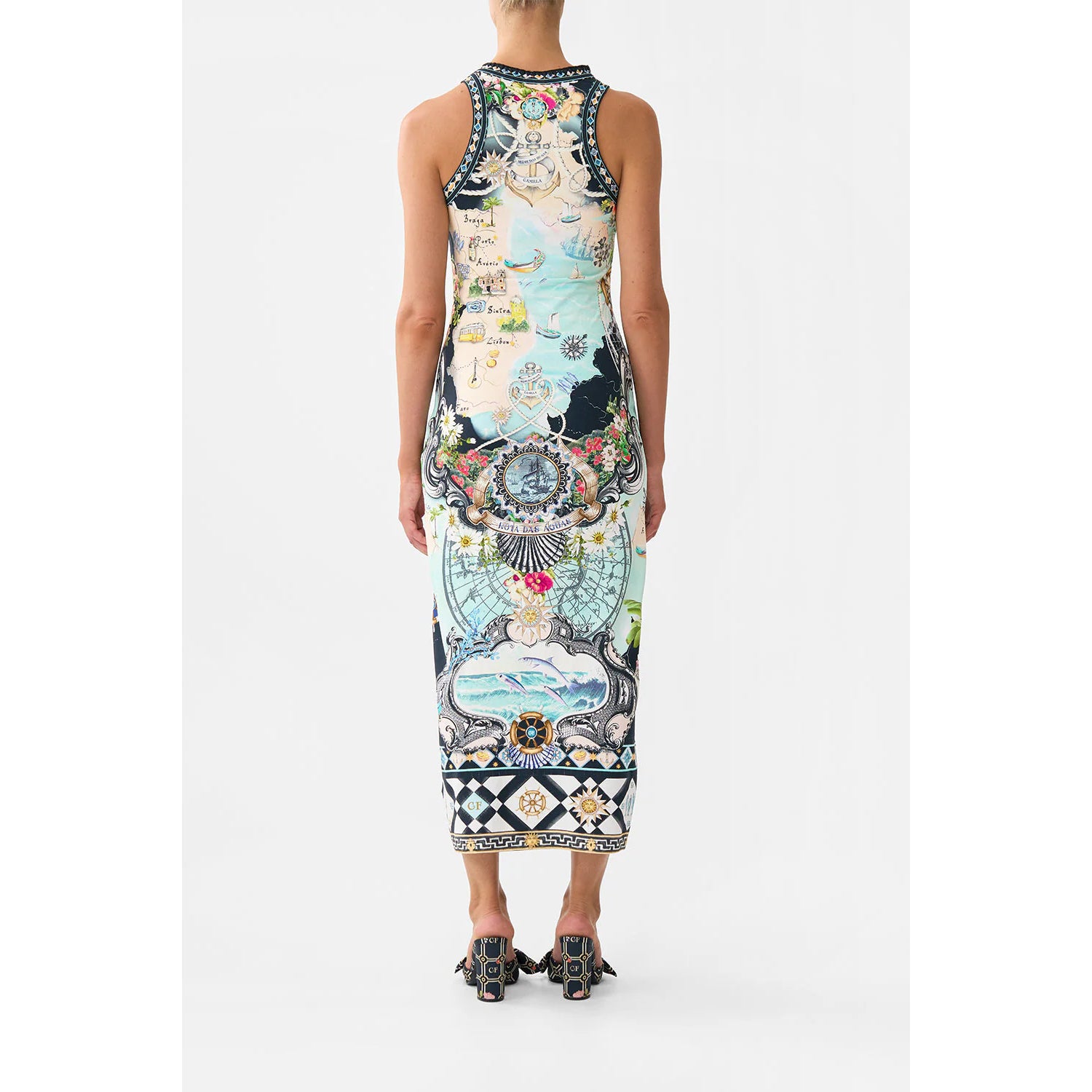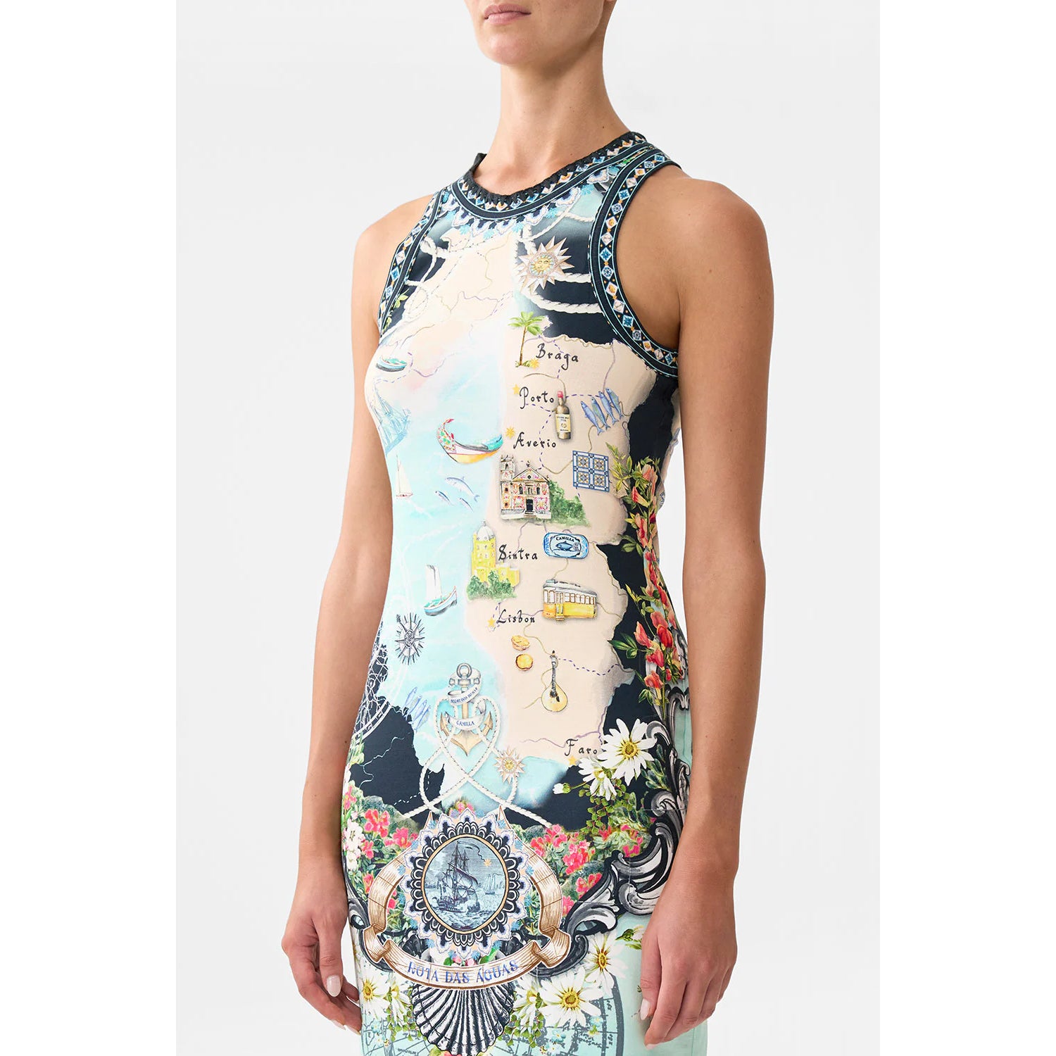 Designed in Australia, the Folk Afloat Jersey Tank Dress sings of Portugal’s coastal dreams—intricate patterns and soft hues drift through a decadent world of wonder and whimsy. Lovingly handcrafted, this luxury jersey midi dress showcases a fitted silhouette that caresses your curves and falls to mid-calf length. Bodycon sleeveless style with slightly lowered armholes, scooped neckline and slight racer back for a flattering, comfortable fit.