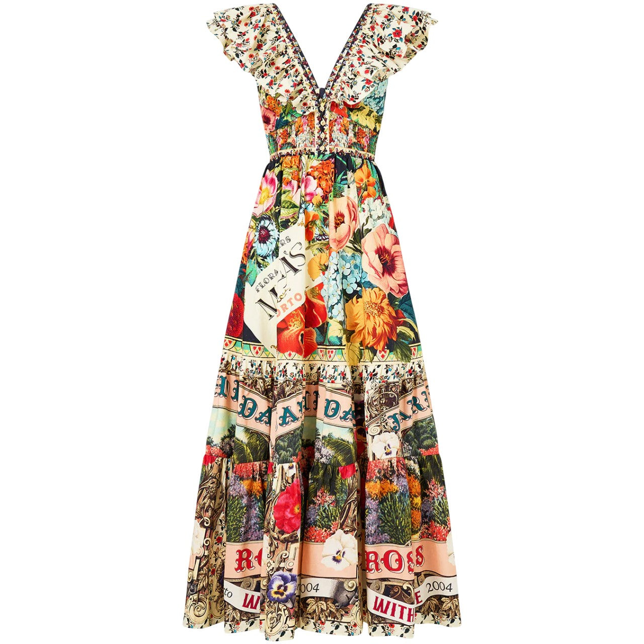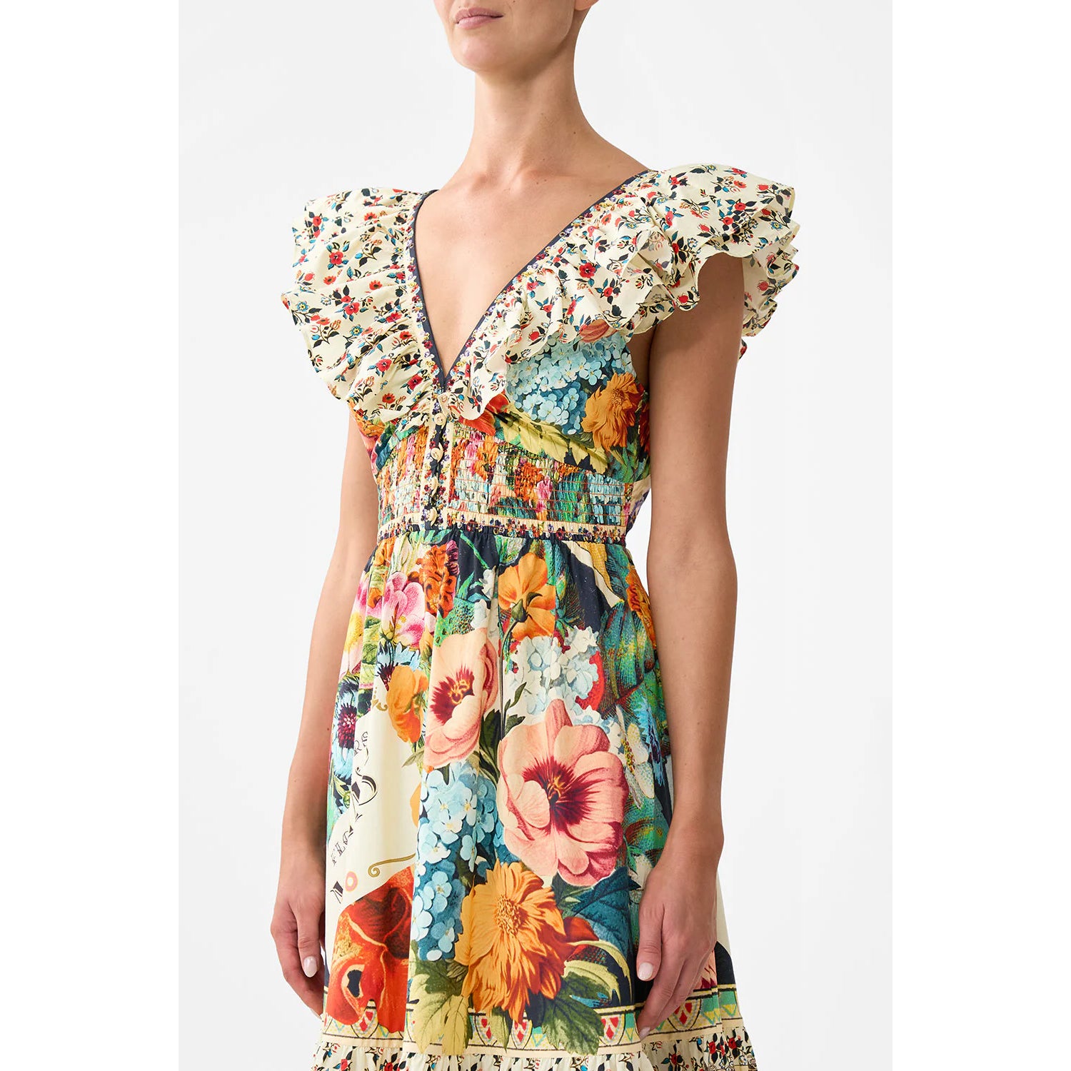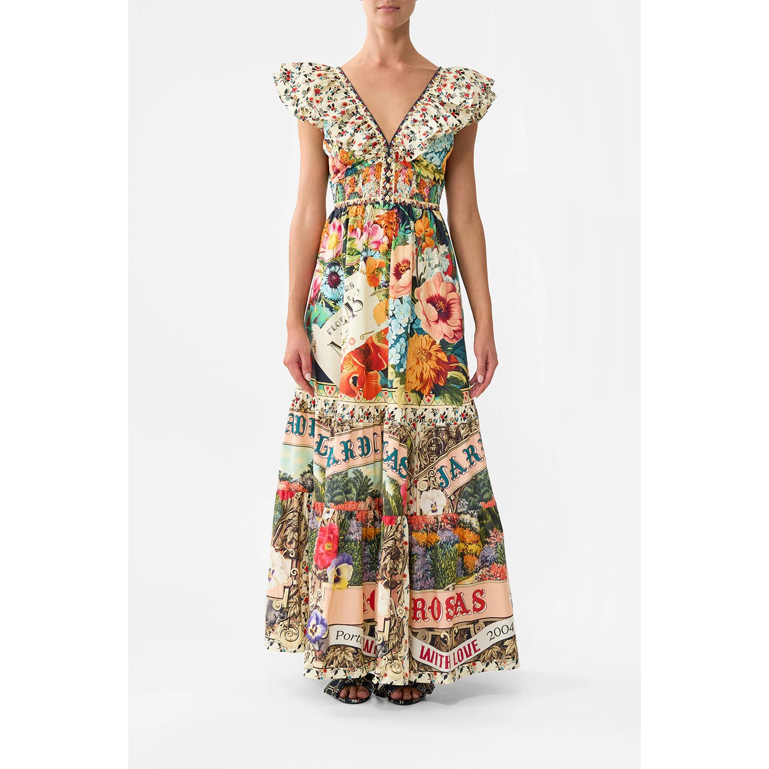 Designed in Australia, the Aromatic Amor Tiered Dress With Neck Frill is inspired by Portugal’s artisanal soul, notes of perfumed soaps and fragrant gardens bloom in layers of delicate charm. Lovingly handcrafted, this sumptuous maxi dress homes a plunging V neckline with fitted bust. The fitted bodice flows into a flared skirt of cascading tiered panels that dance at the ankles.