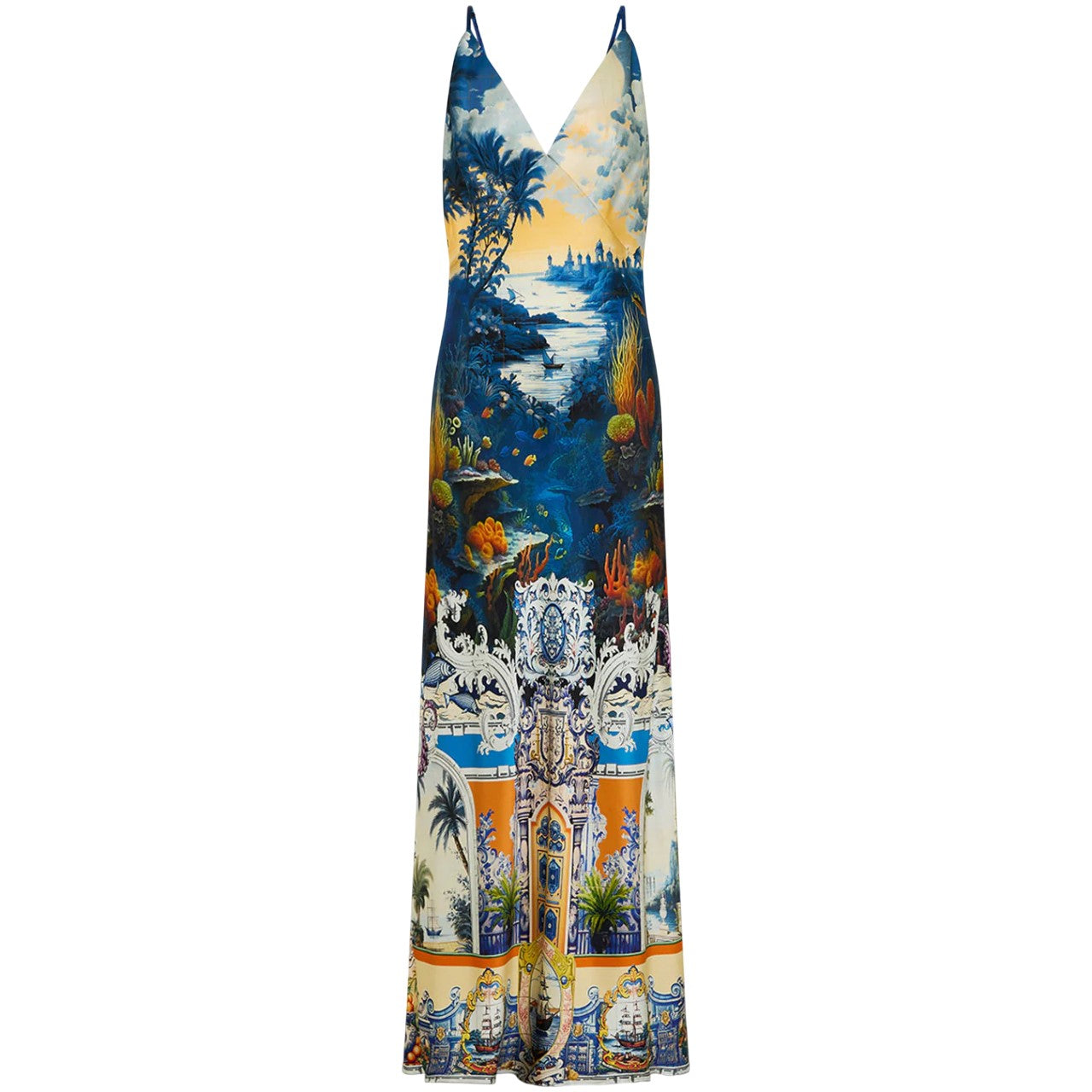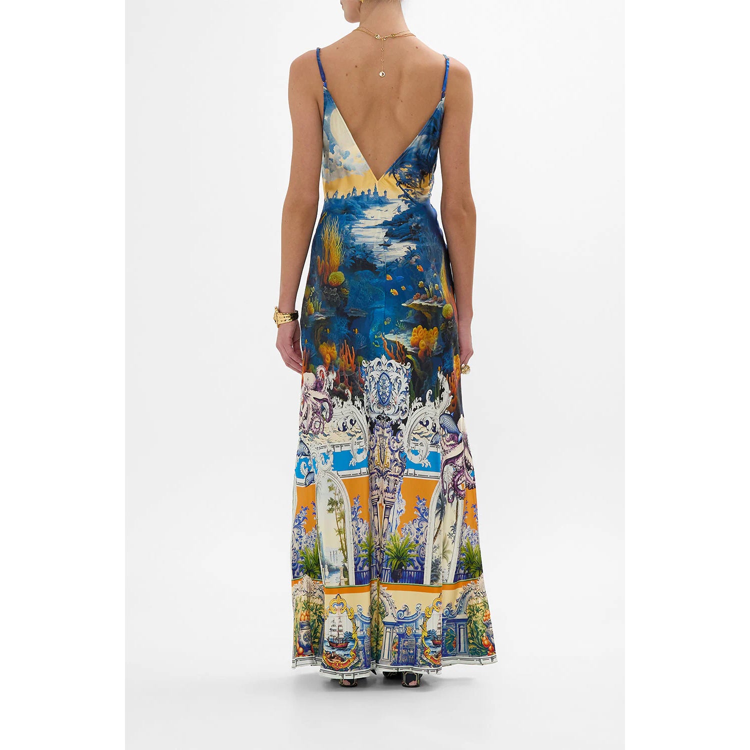 Designed in Australia, The Song Of Saint Anthony V Neck Full Length Bias Slip Dress embarks on a fishing trip through Lisbon’s coastal charm, where hand-drawn creatures embody the spirit of the Saint Anthony Festival—oceanic and celebratory. Lovingly handcrafted, this stunning CAMILLA silk maxi dress features a shaped panel bustline that falls into a skimming bodice, gently flaring into a maxi length hemline. The adjustable straps and deep V back neckline allow for a sleek silhouette with effortless allure.