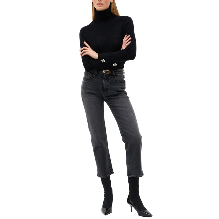 The Charles Sweater from DMN Paris is the epitome of timeless luxury. Crafted in cashmere, this sleek black knit offers unmatched softness, warmth, and elegance. Designed with a classic turtleneck and long sleeves, it features jewel button detailing at the cuffs for a subtle touch of sophistication. Its tailored fit makes it a versatile wardrobe essential, perfect for elevating everyday outfits or layering under tailored outerwear.