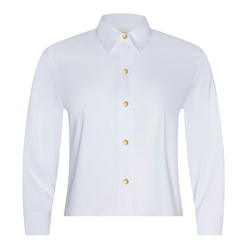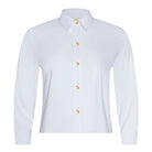 Classic from the front, statement from the back. The Fawn is a white button-down with a striking floral print.
