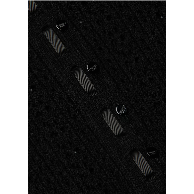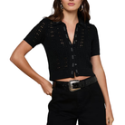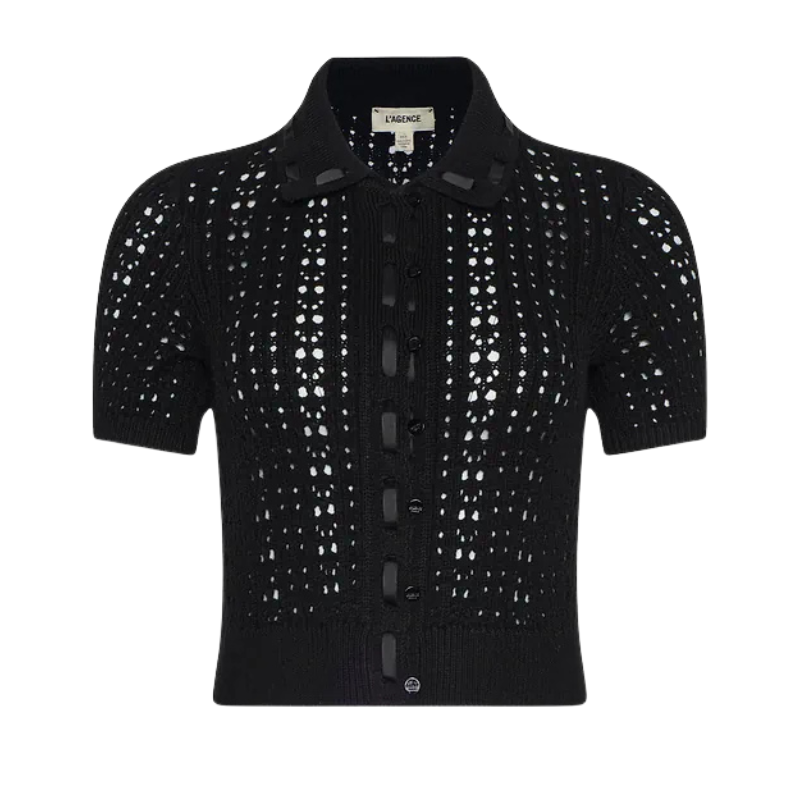 Part cardigan, part top, and utterly charming. Crafted from an airy pointelle knit and accented with grosgrain ribbon trim.