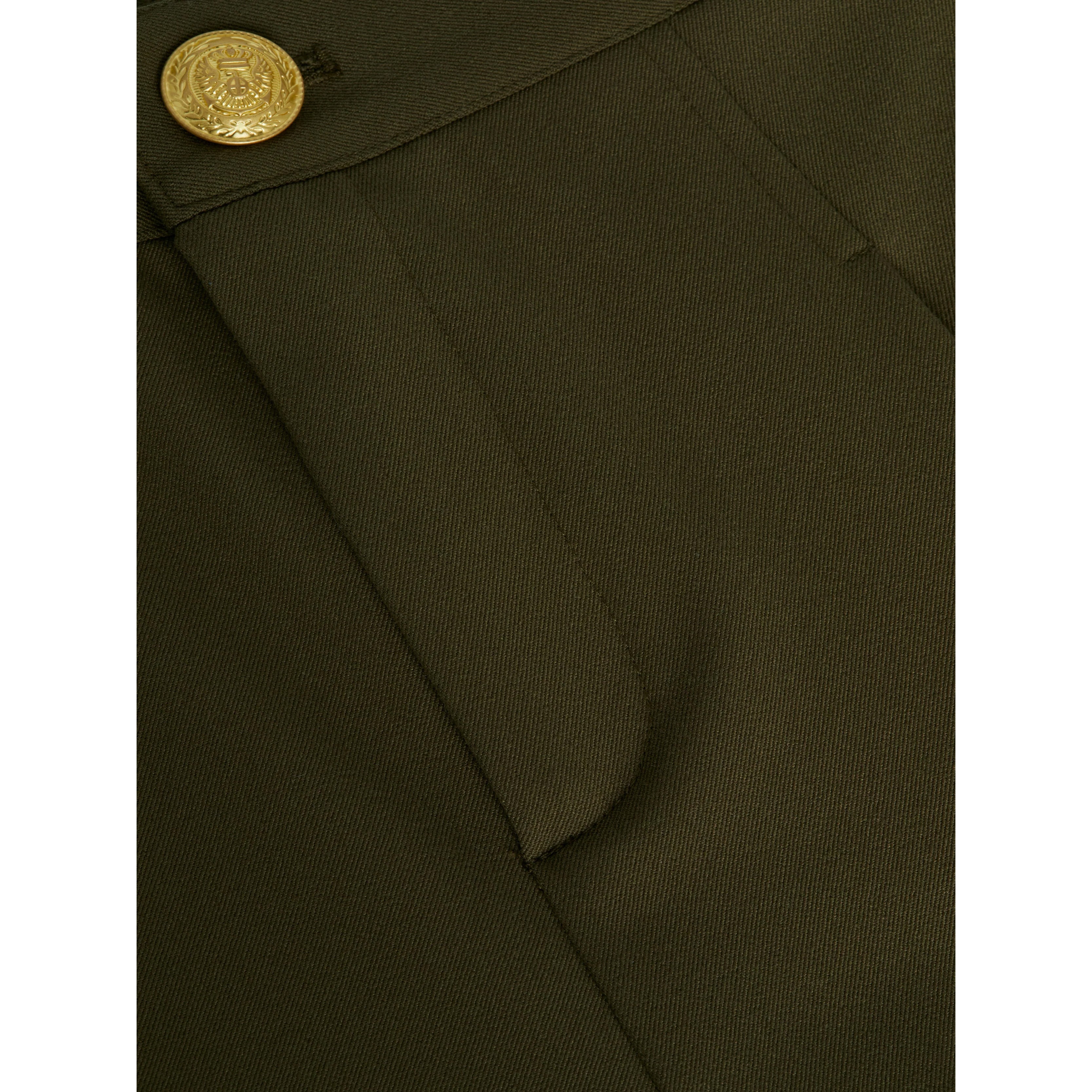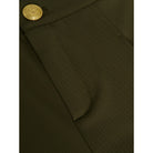 - Gold button closure