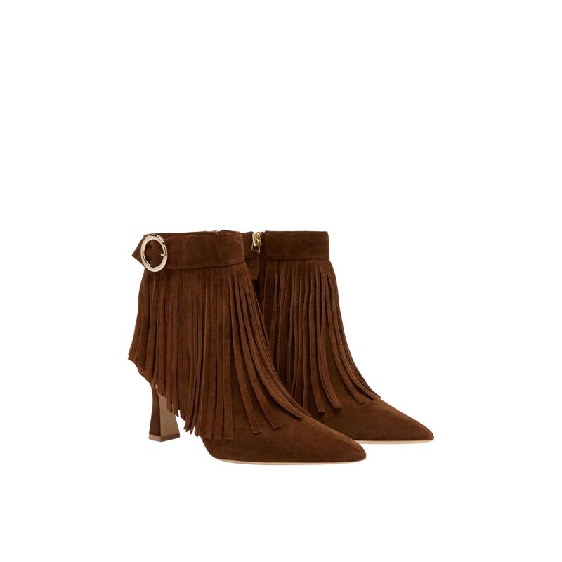 Donni 70 Brown Suede Fringed Heeled Ankle Boots