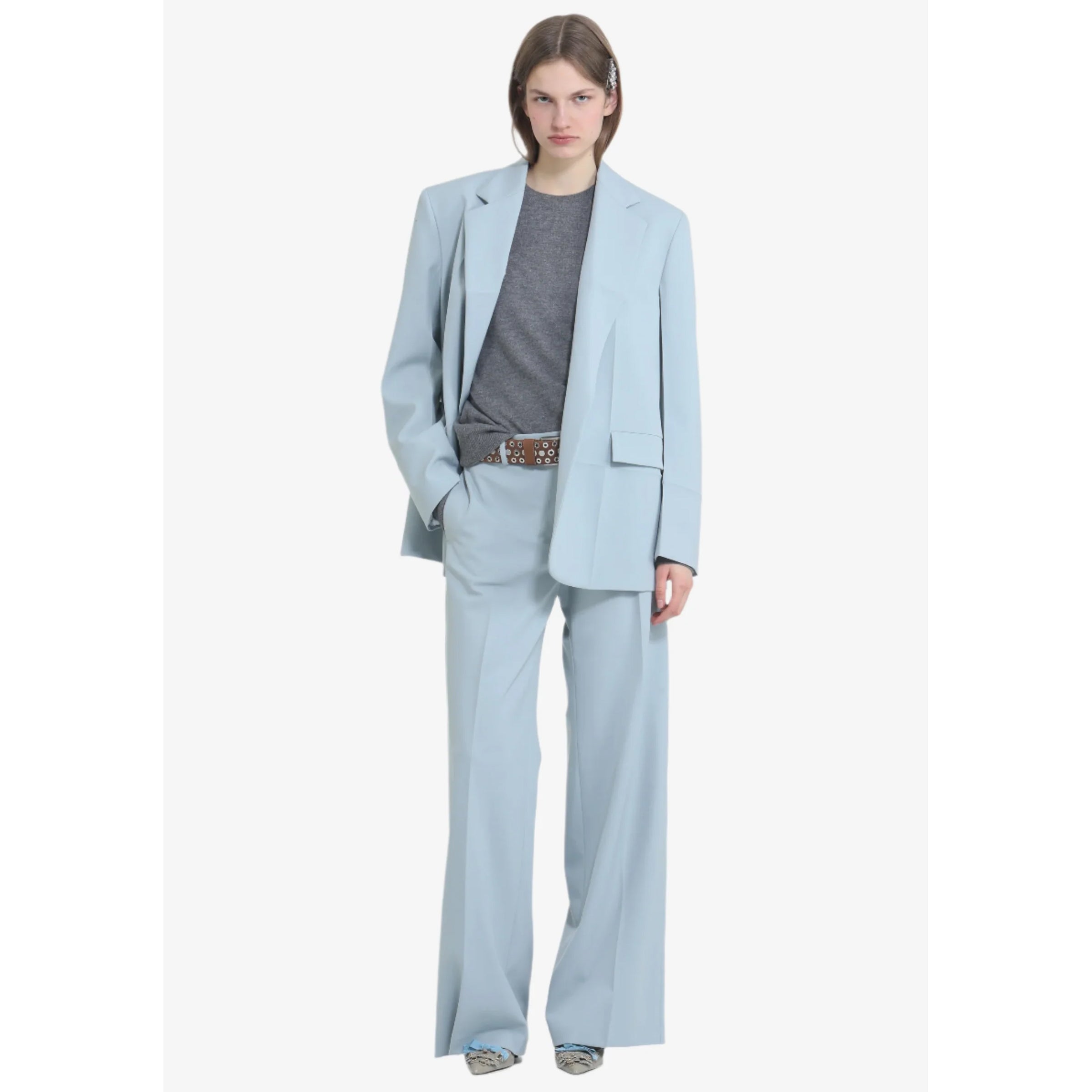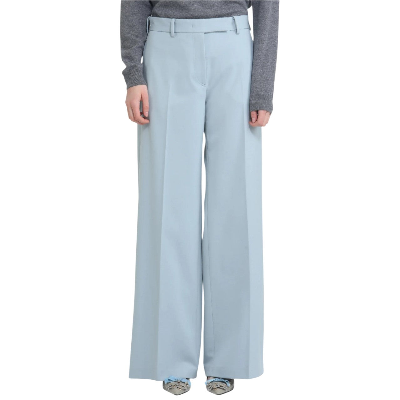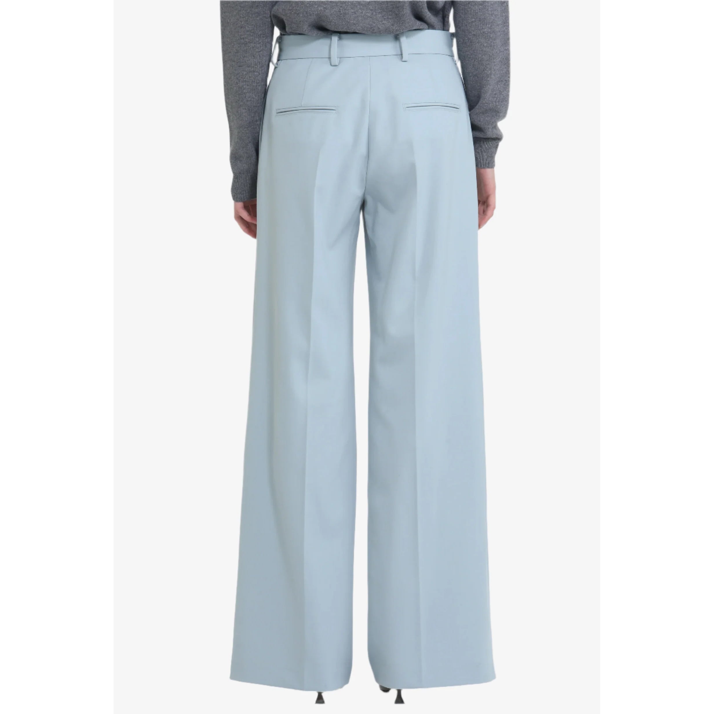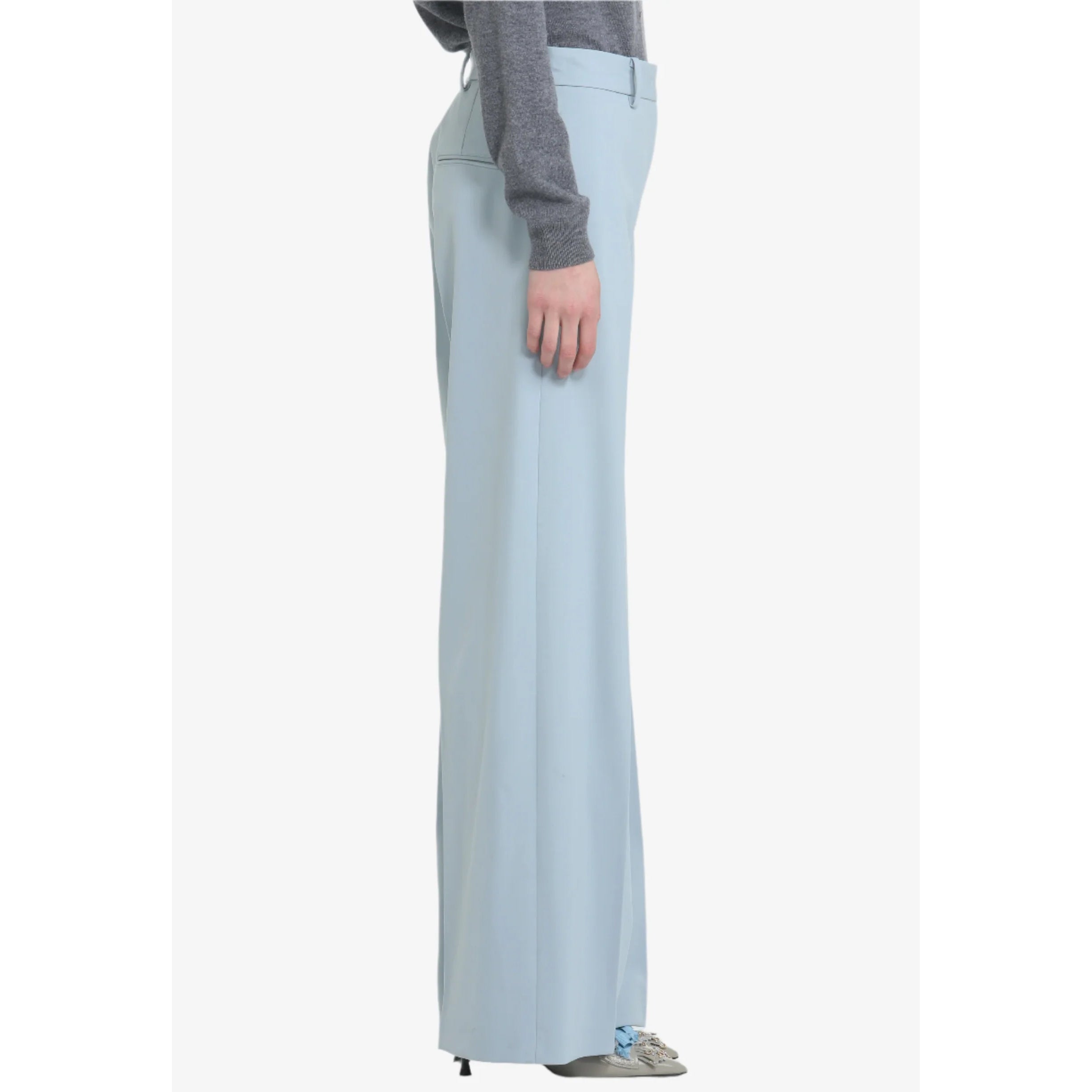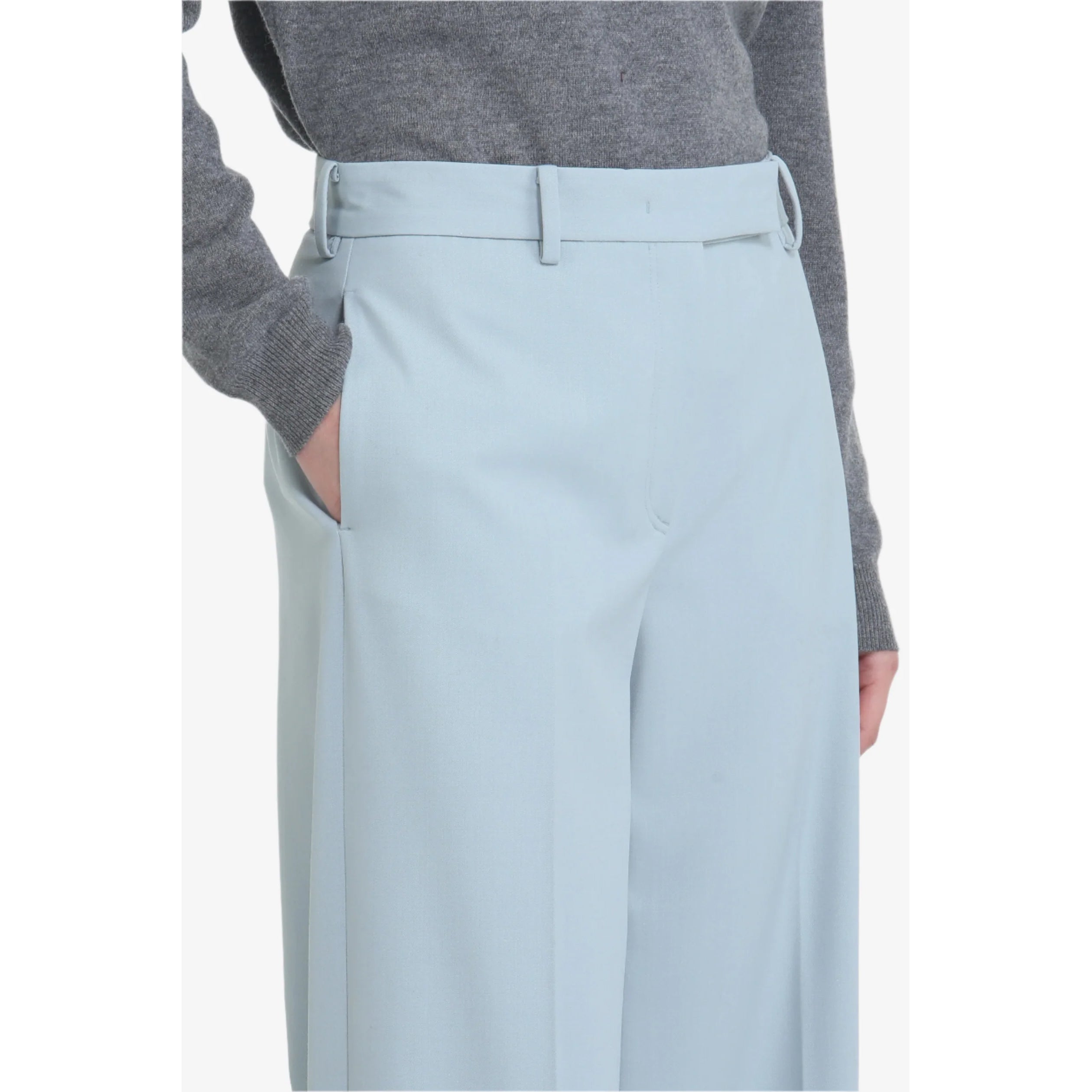 Elevate your wardrobe with these No. 21 Palazzo Trousers, designed in a breezy sky blue hue. Crafted with a flattering high-rise waist, classic belt loops, and a flowing wide-leg silhouette, these trousers exude effortless sophistication. Perfect for pairing with crisp blouses or relaxed knits, they transition seamlessly from desk to dinner.