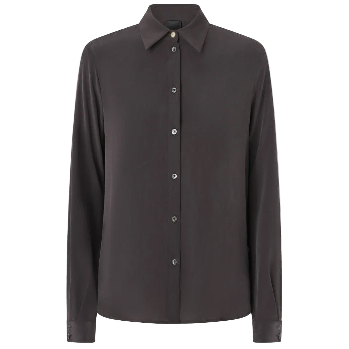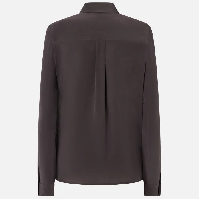 Classic shirt with small collar, long sleeves completed by buttoned cuffs and a refined rear yoke with inverted pleat. The garment is made from pure silk crepe de Chine with a sand wash treatment, which attenuates the luster of the fabric, giving it a slightly worn look. The first button of the fastening is made from metal and is decorated with a star. Pair this shirt with jeans to give your everyday look a feminine and original upgrade that won't go unnoticed.