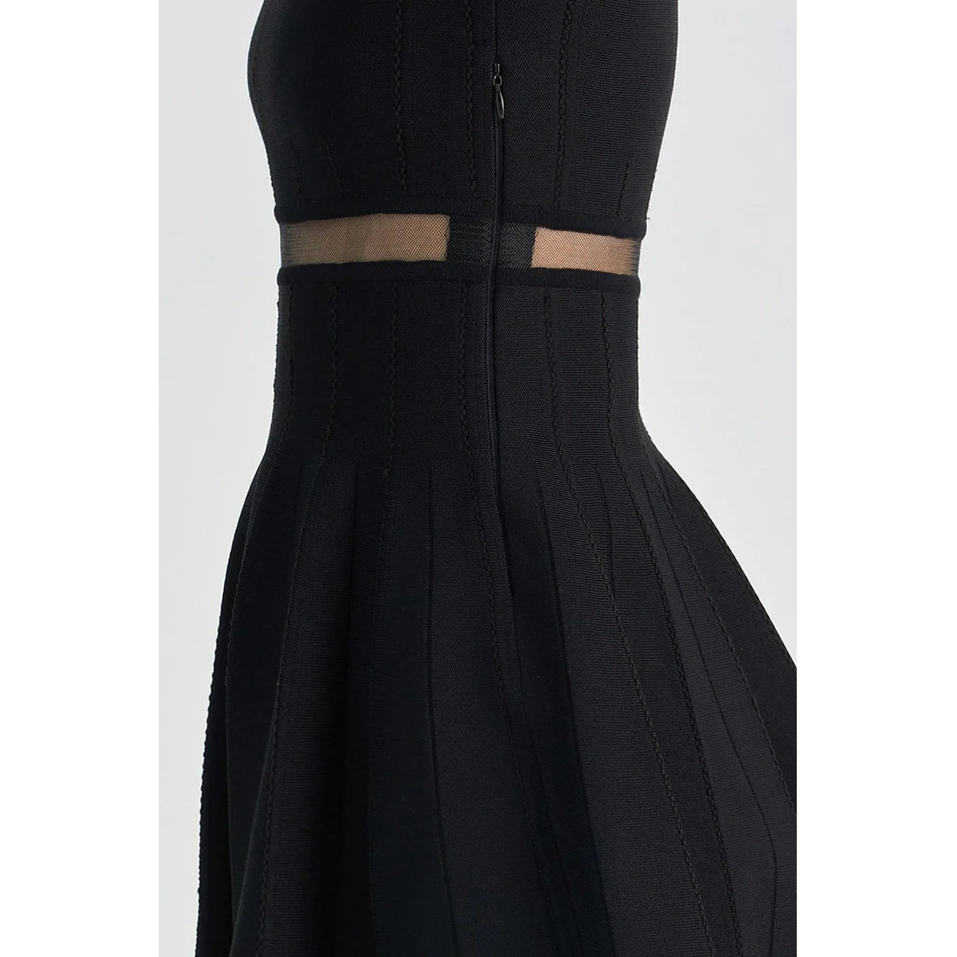 RVN- Stitch Jacquard Sheer Hem Flare Dress