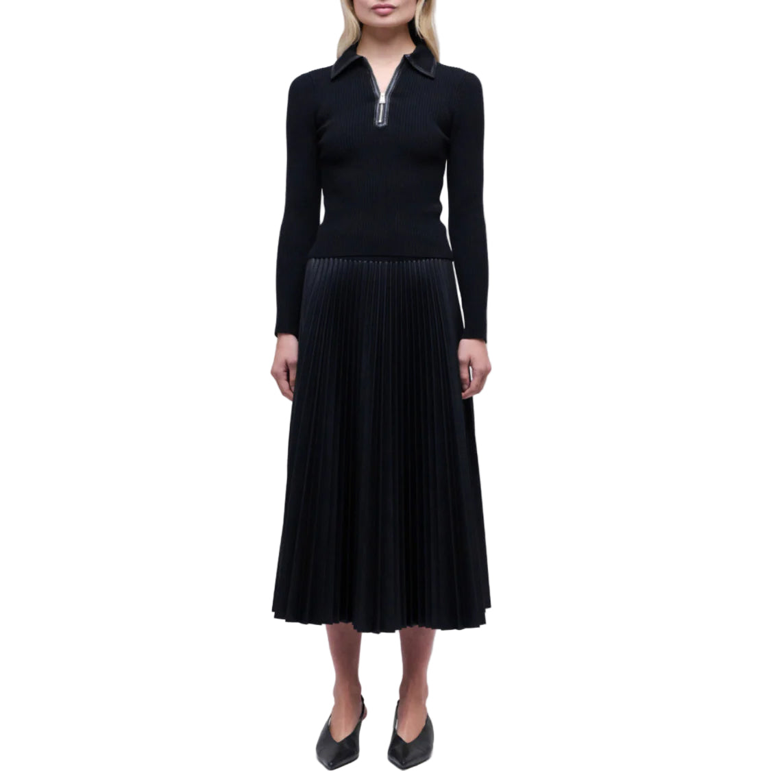 The Livana Top combines modern polish with everyday ease. Designed with a pointmed collar, long sleeves, and a sleek half-zip detail, this knit piece is tailored for versatile wear. Its fitted silhouette pairs effortlessly with everything from wide-leg trousers to pleated skirts, making it a go-to for both casual and elevated looks.