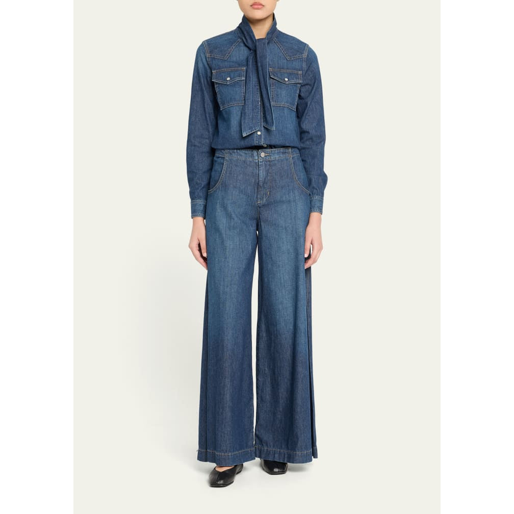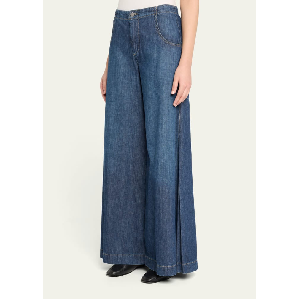 Fits True to Size. The Model is 5'10" and wearing a size 25.