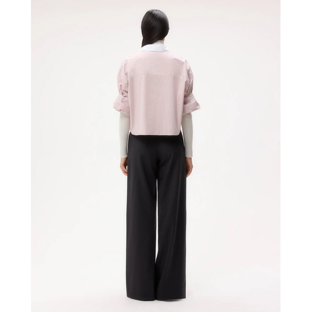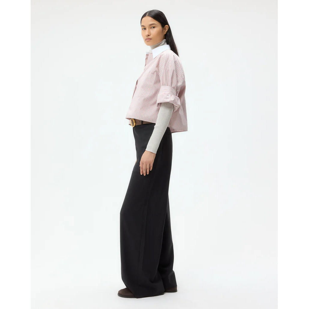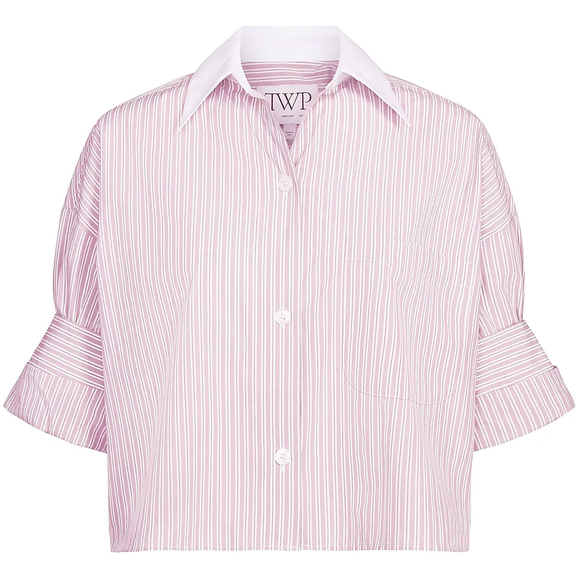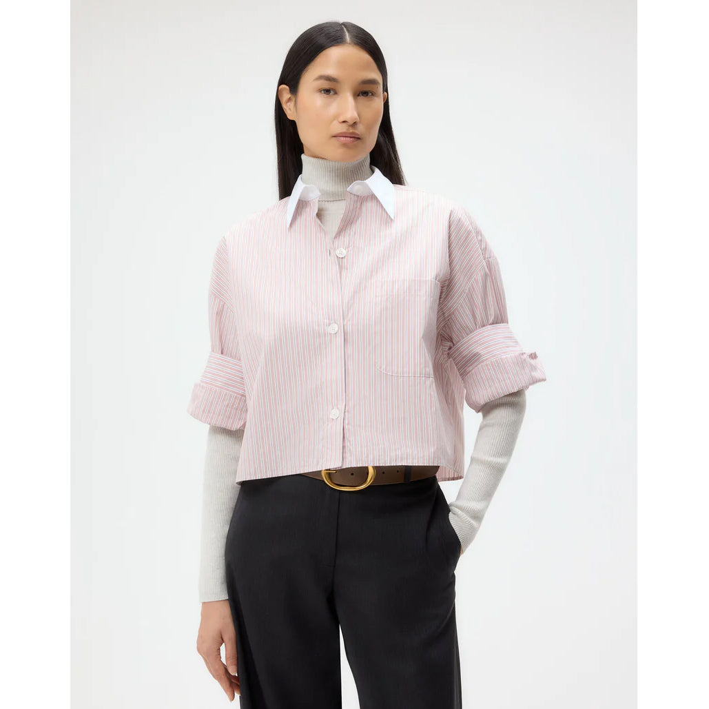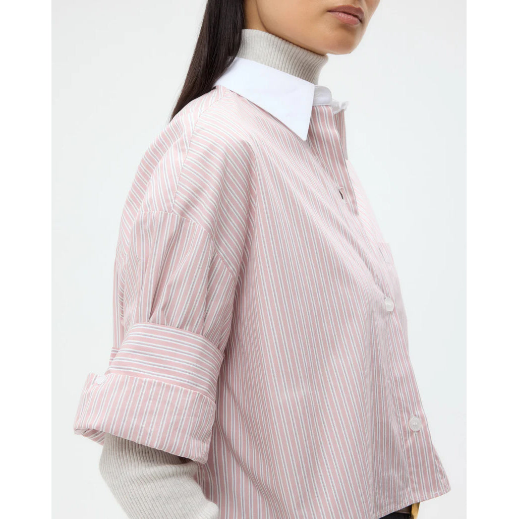 Cropped, short sleeved button down in striped superfine Italian cotton shirting. The Next Ex is a boxy silhouette. Complete with a chest patch pocket, button up placket, spread collar, and our signature double roll button cuffs.