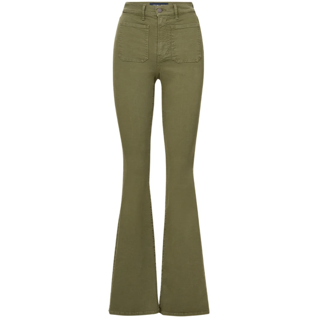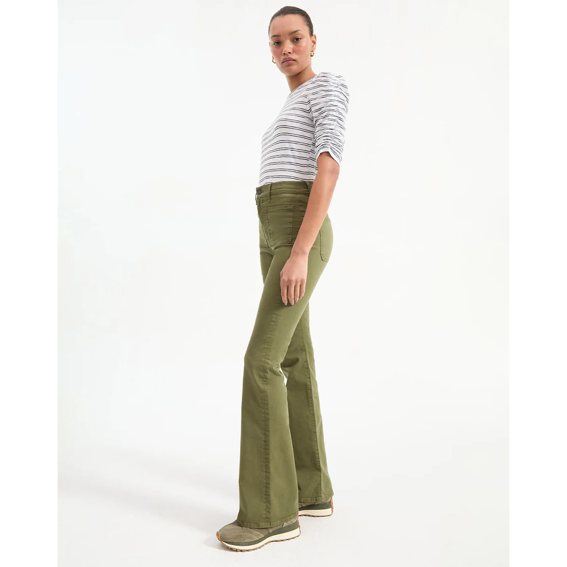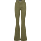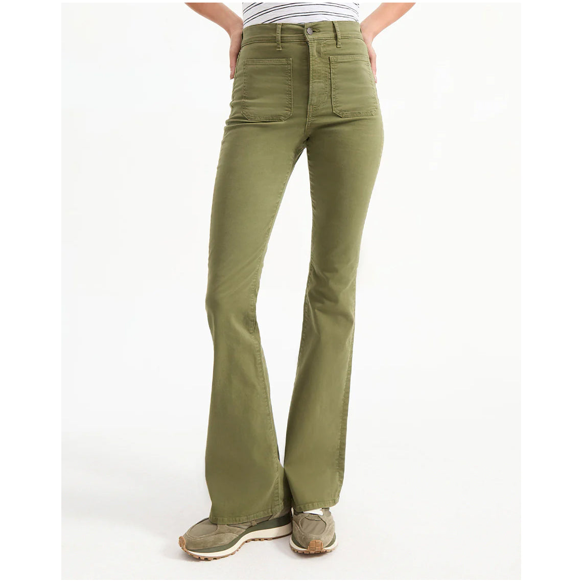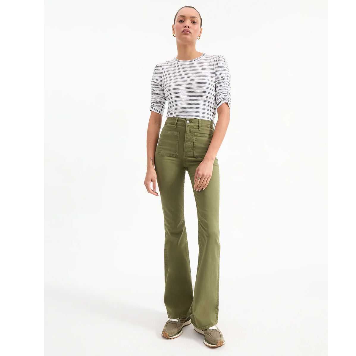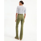 High-rise waist is fitted through the hips and thighs to the subtly flared leg. Made in LA from super-stretch Japanese twill, this VB best-seller in army green is a year-round must-have.