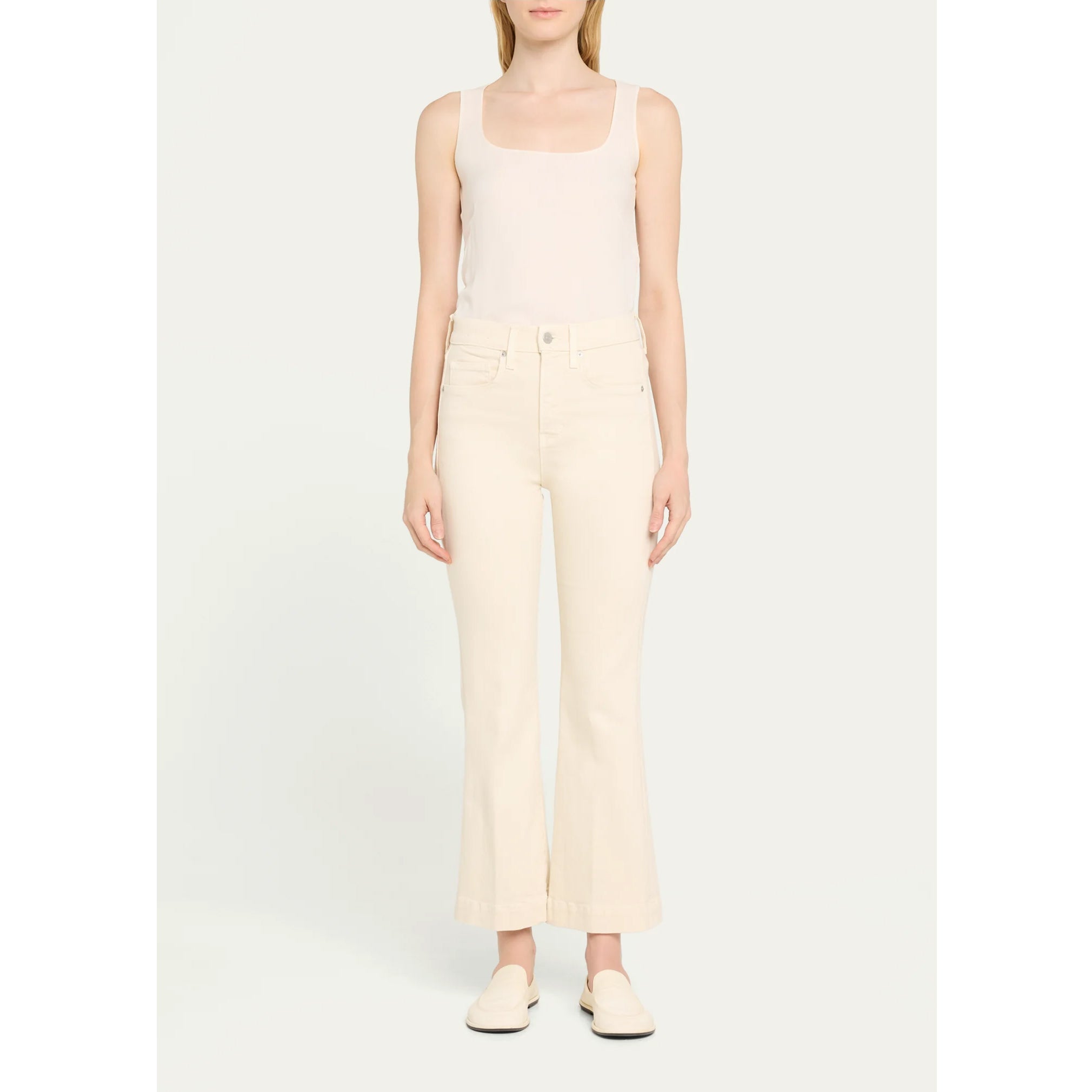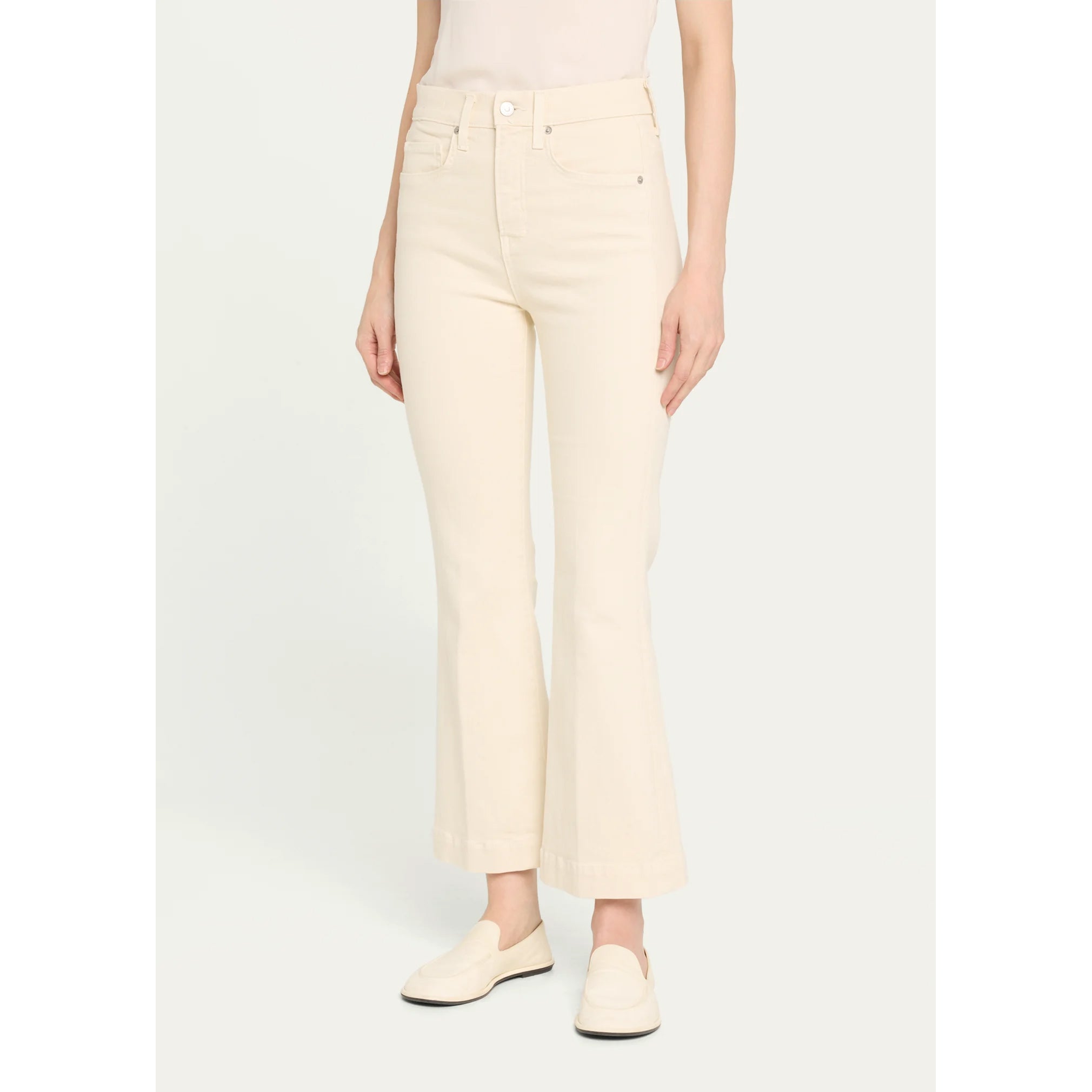 Veronica Beard Carson High Rise Ankle Flare Jeans in the color Ecru.