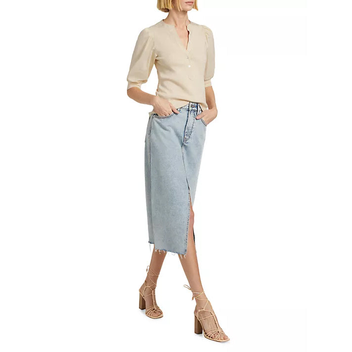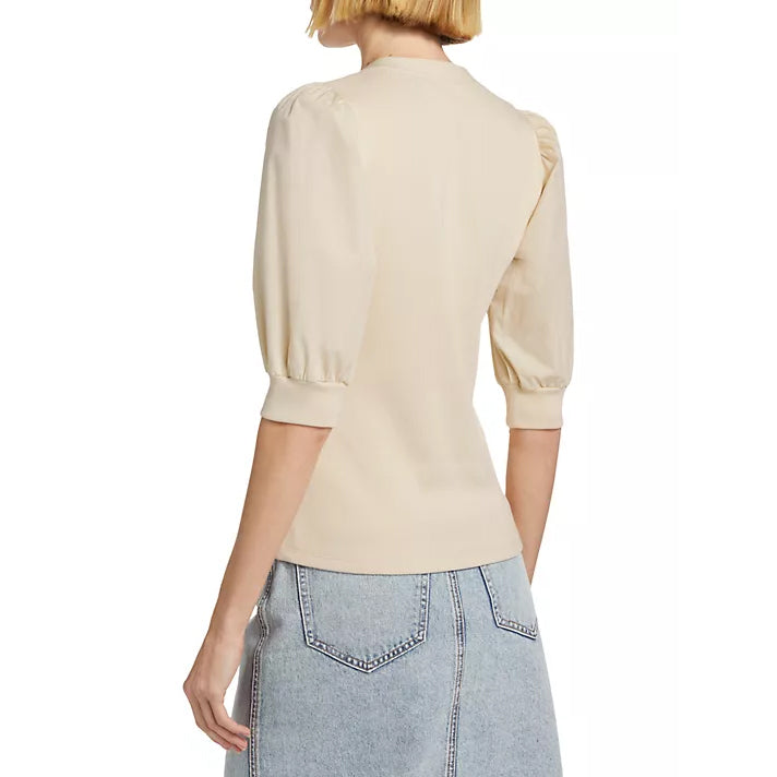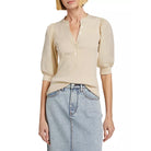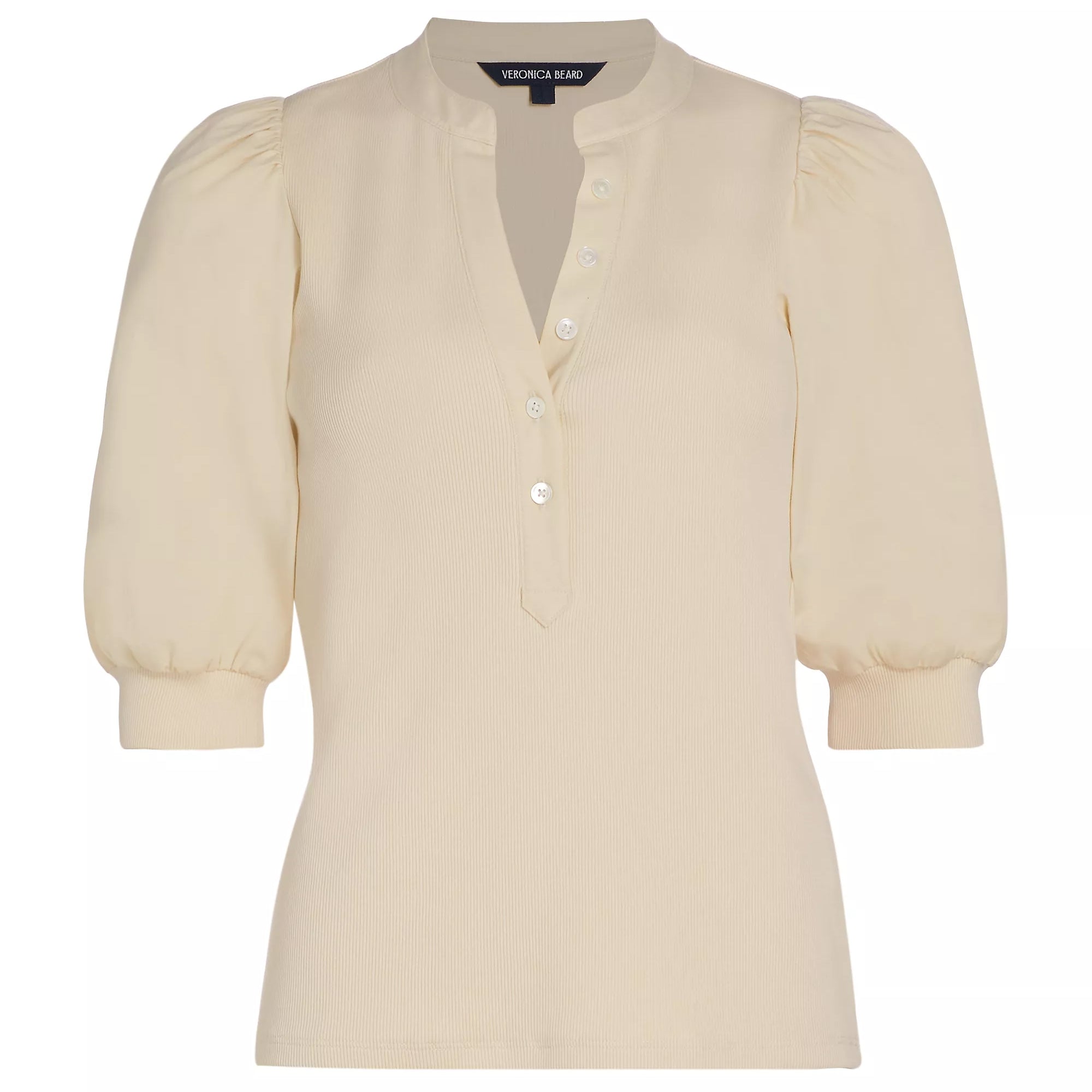 Rendered in a rib-knit, Veronica Beard's Coralee top features elbow puff sleeves.