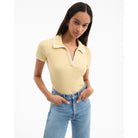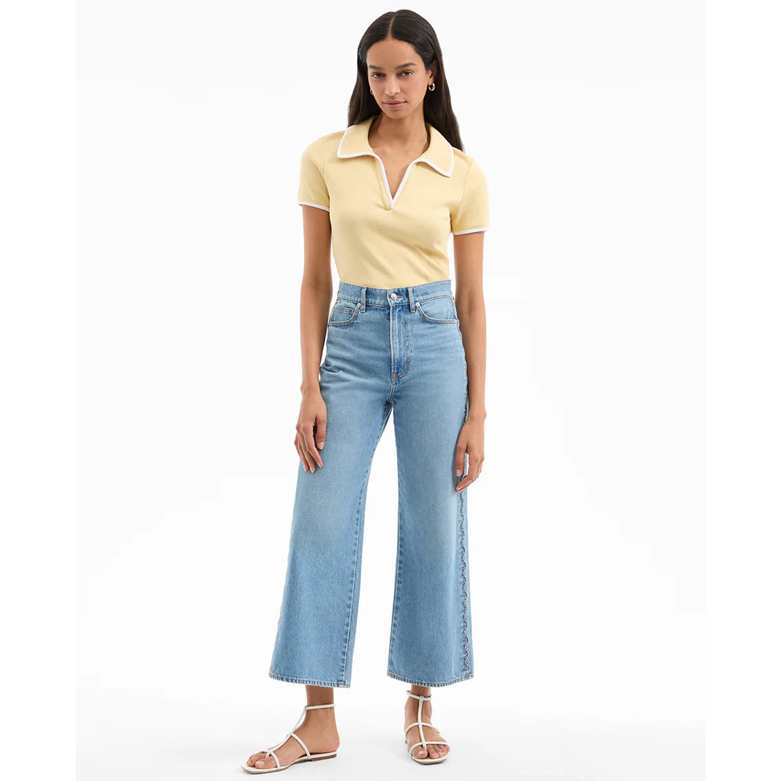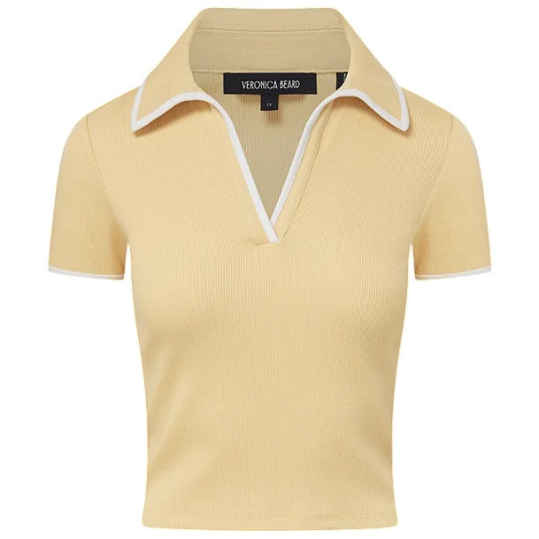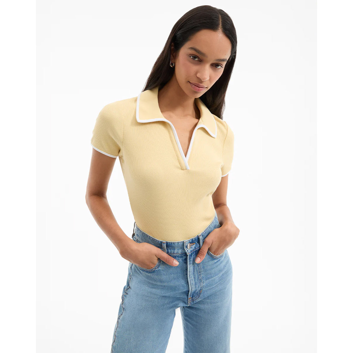 Your favorite polo is back in yellow, now with white contrast piping along the collar and sleeves and a buttonless placket for a minimalist feel. Cut for a slim fit from a stretch-cotton blend, it's chic on its own or layered under a lightweight jacket for extra polish. Pair with wide-leg jeans or denim shorts for summer ease.