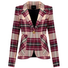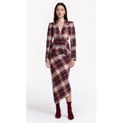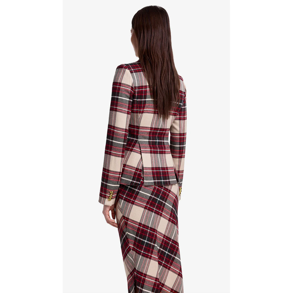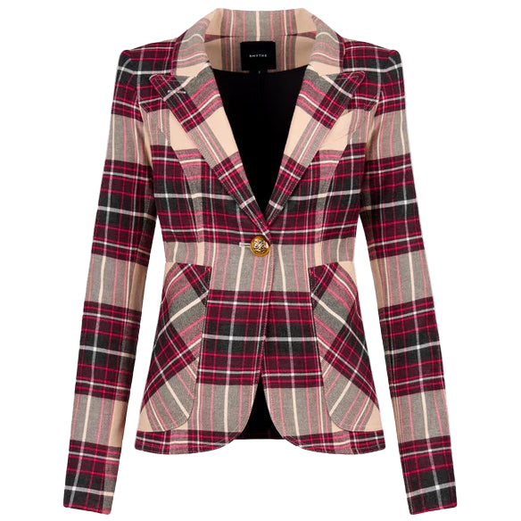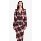 Meet your statement blazer for the season. The iconic Duchess silhouette from SMYTHE gets an autumn-ready update in rich garnet plaid. Sharp shoulders, a tailored waist, and elongated lines create a flattering, feminine shape while the bold pattern adds just the right amount of drama. Finished with signature patch pockets and peak lapels, this blazer brings modern polish to classic tailoring. Style it with denim for elevated everyday wear or pair with the matching skirt for a power-set moment.