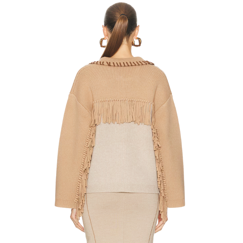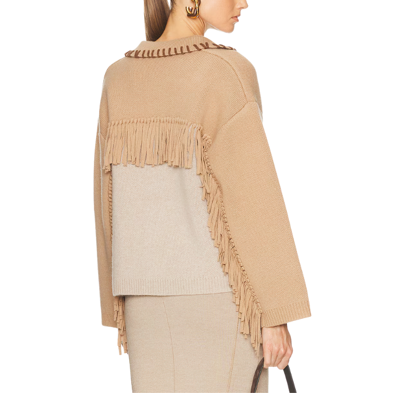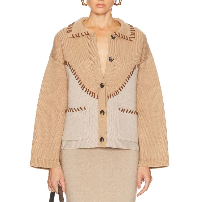 Camel knit with contrasting cream panels cardigan
