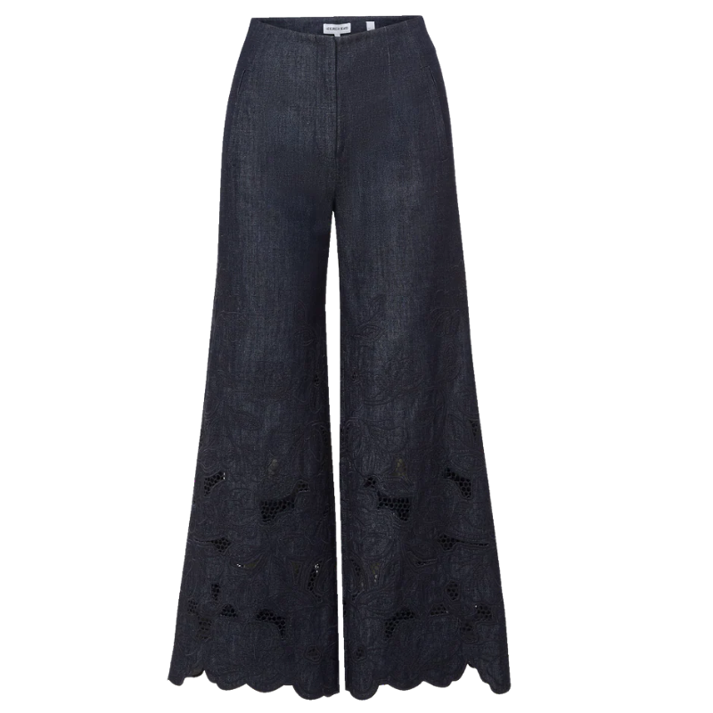 Veronica Beard- Osborne Wide-Leg Eyelet Pant
