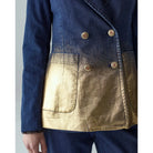 Make a bold statement with this two-tone double denim blazer from Shaft Jeans. Tailored in Italy from premium stretch denim, this structured yet flexible design pairs classic craftsmanship with a modern edge. The contrast between deep indigo and gold tones gives this piece a distinctive, fashion forward finish – perfect for adding character to any look.