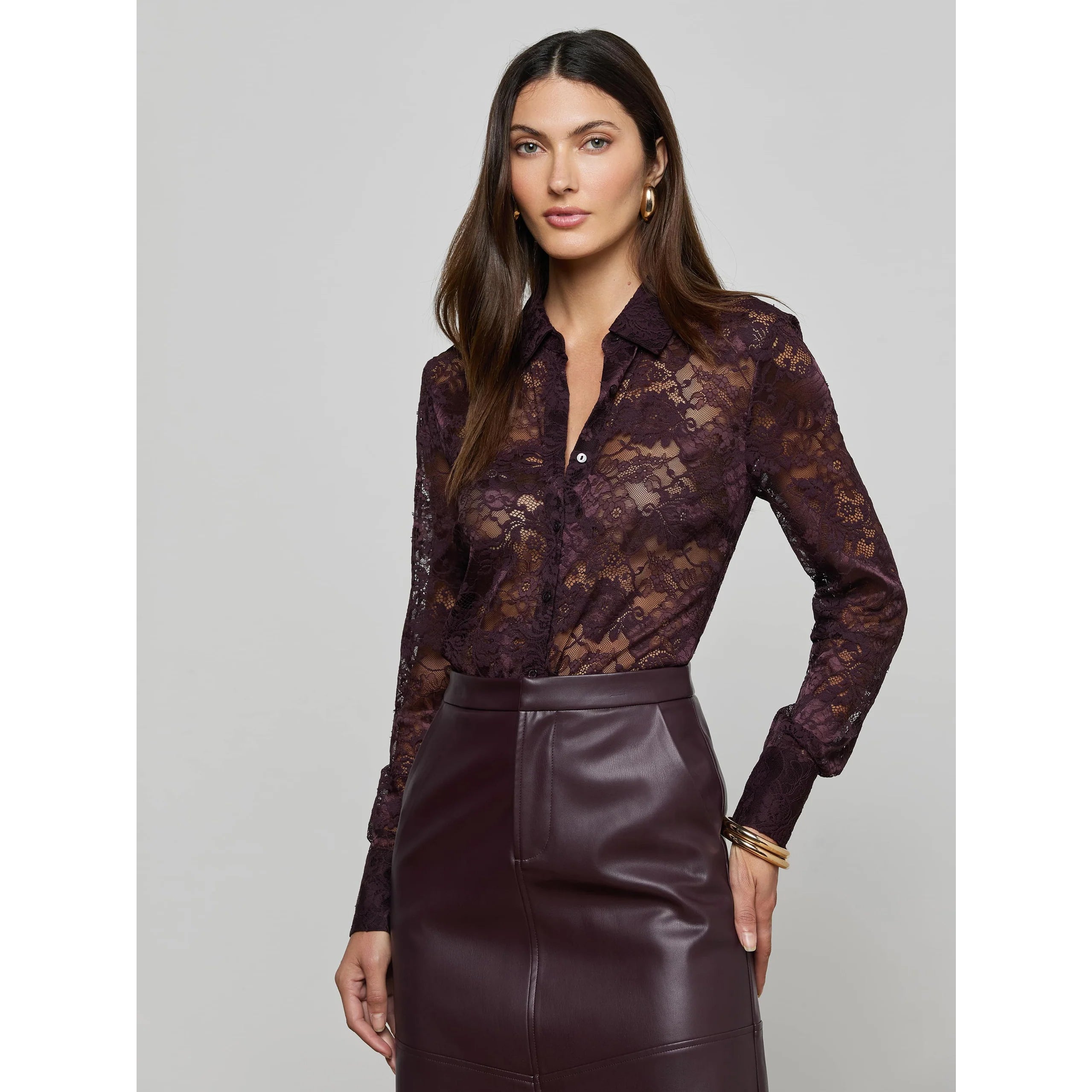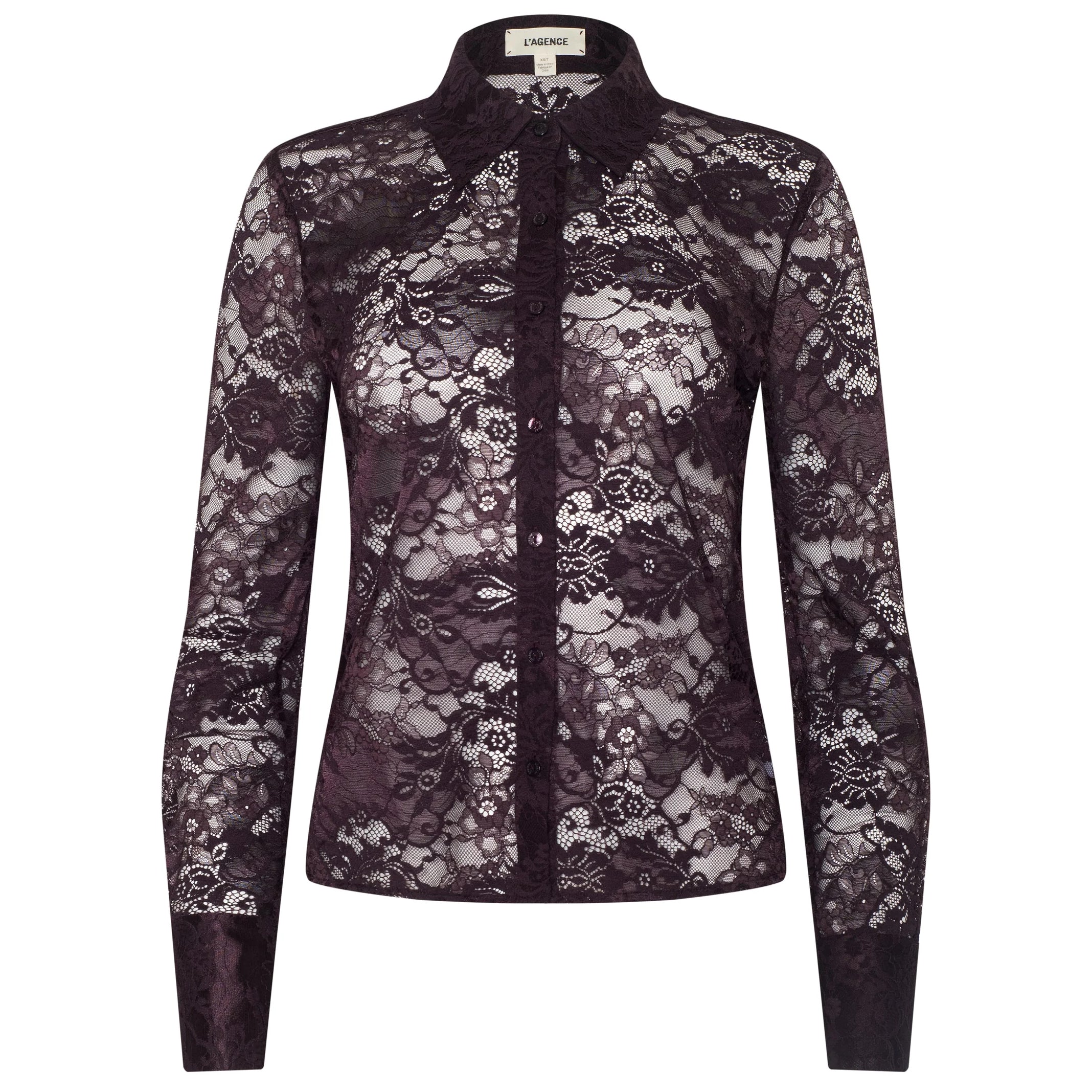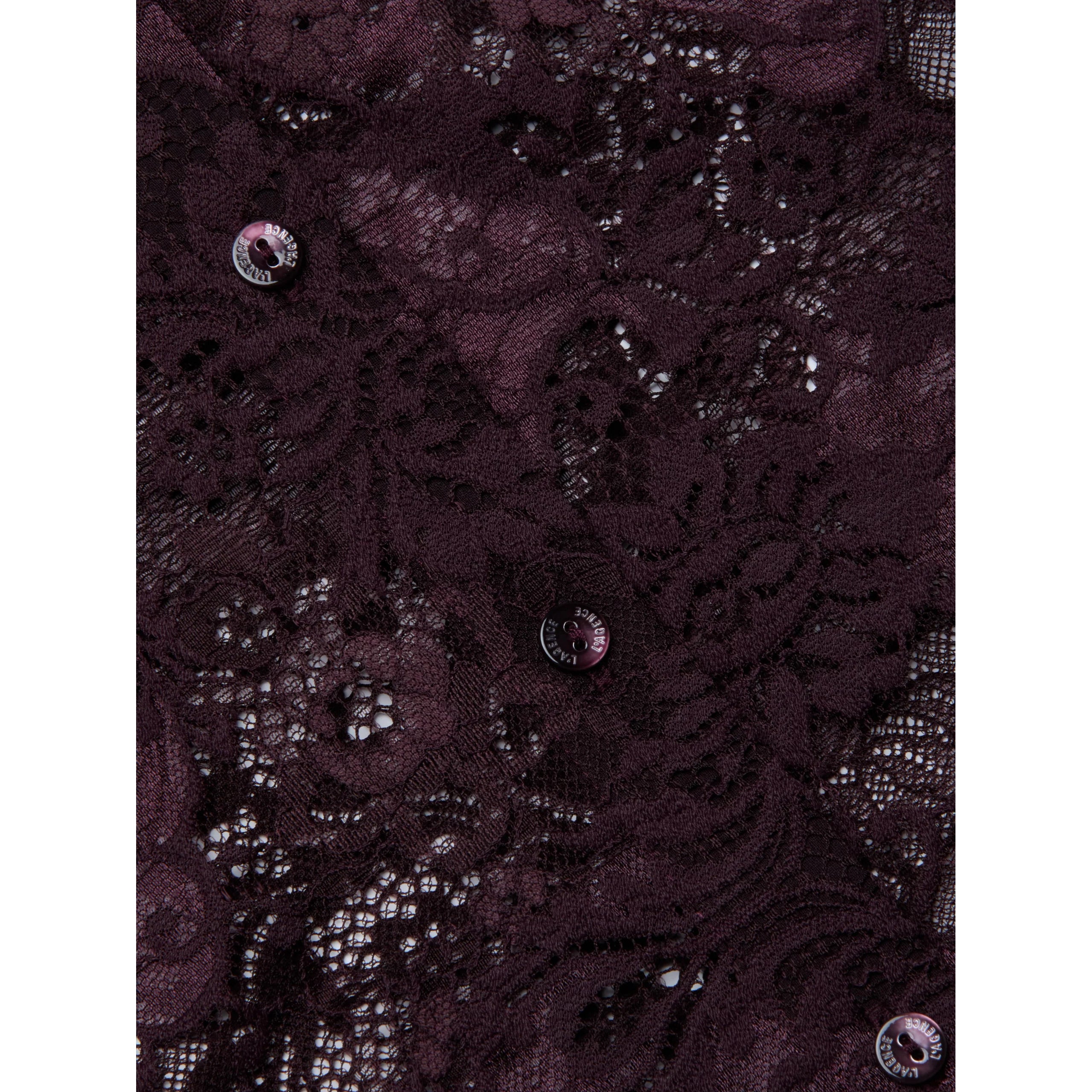 Sheer floral lace makes a romantic statement, worn alone for date night or layered over a camisole for the office. Now in dark malbec.