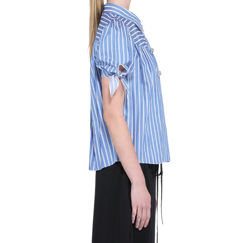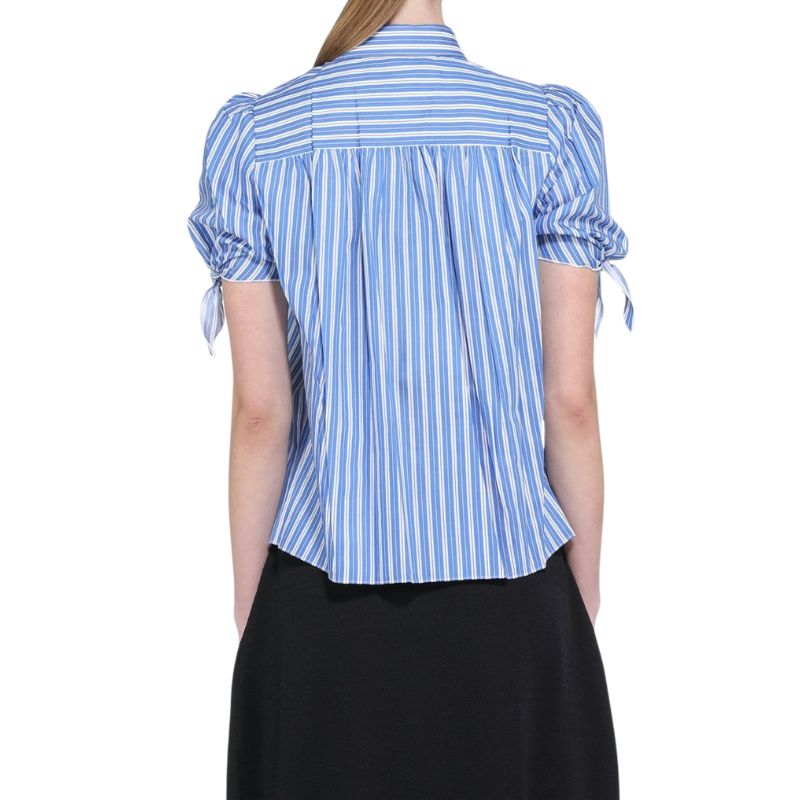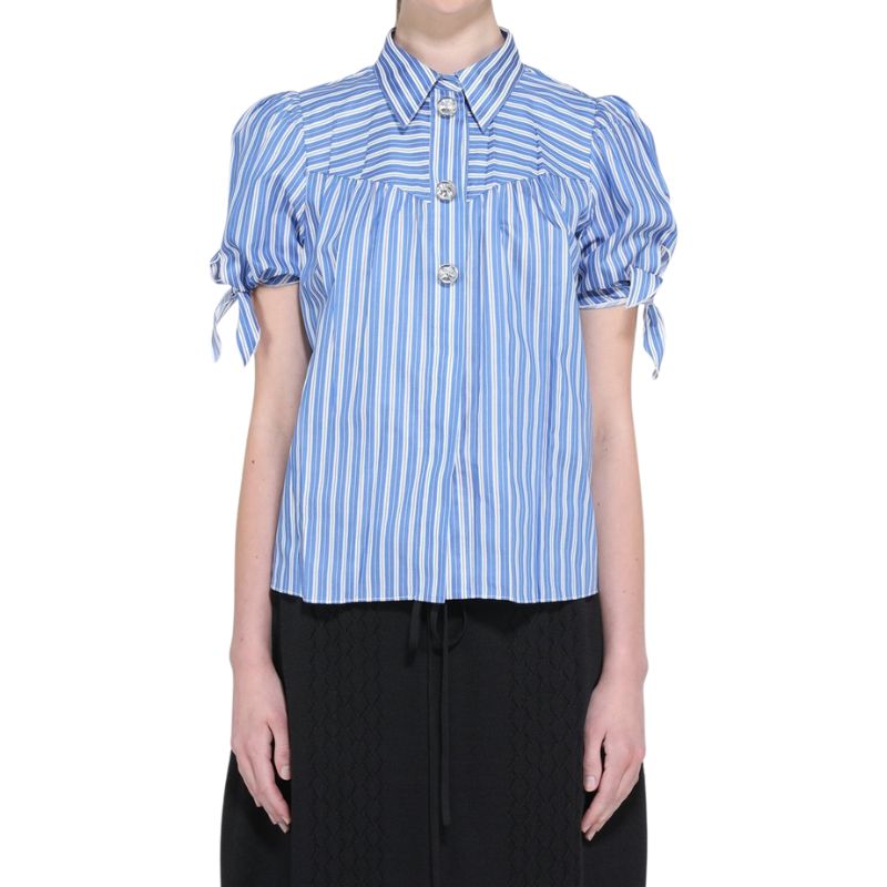 A crisp, classic blouse with a modern feminine twist. Designed with clean vertical stripes and soft volume through the sleeves, this piece blends tailored structure with effortless charm.