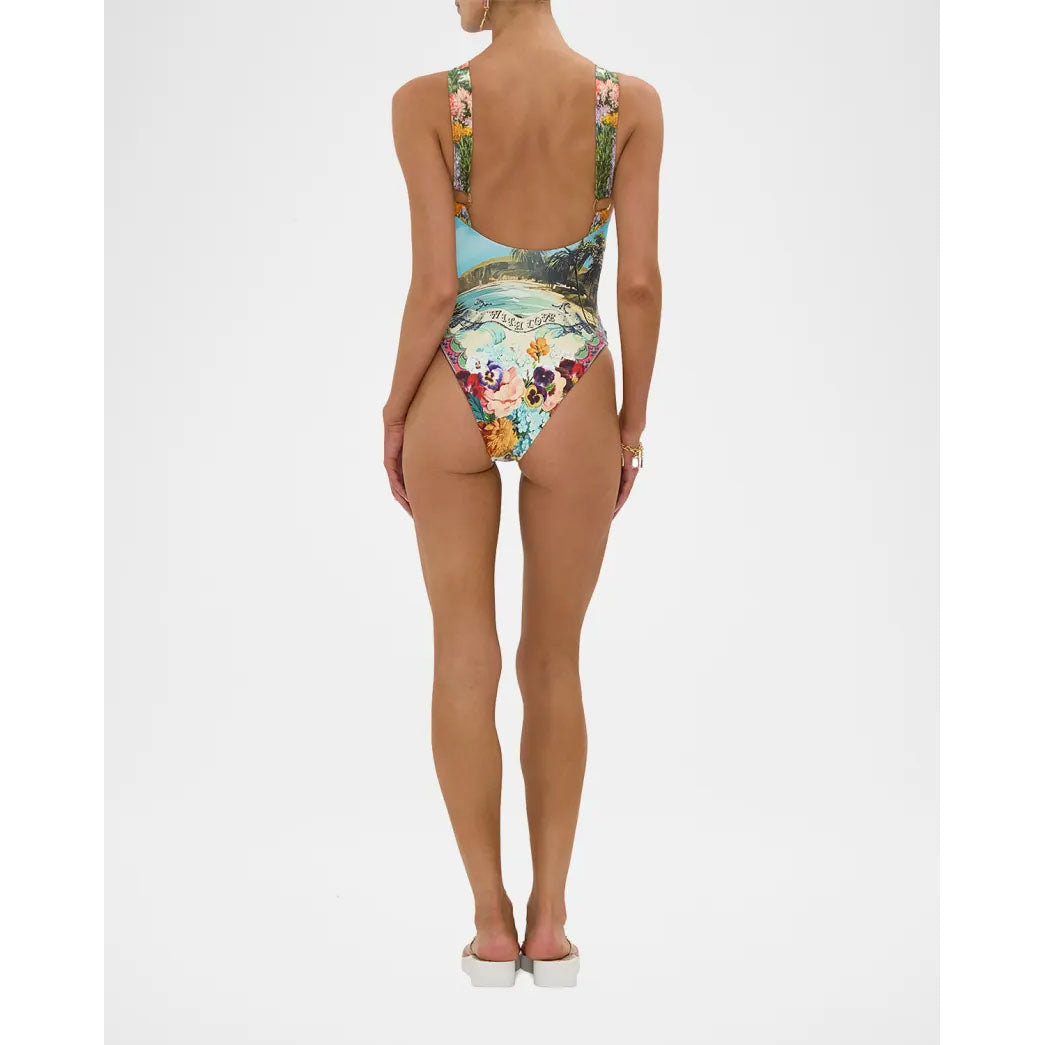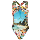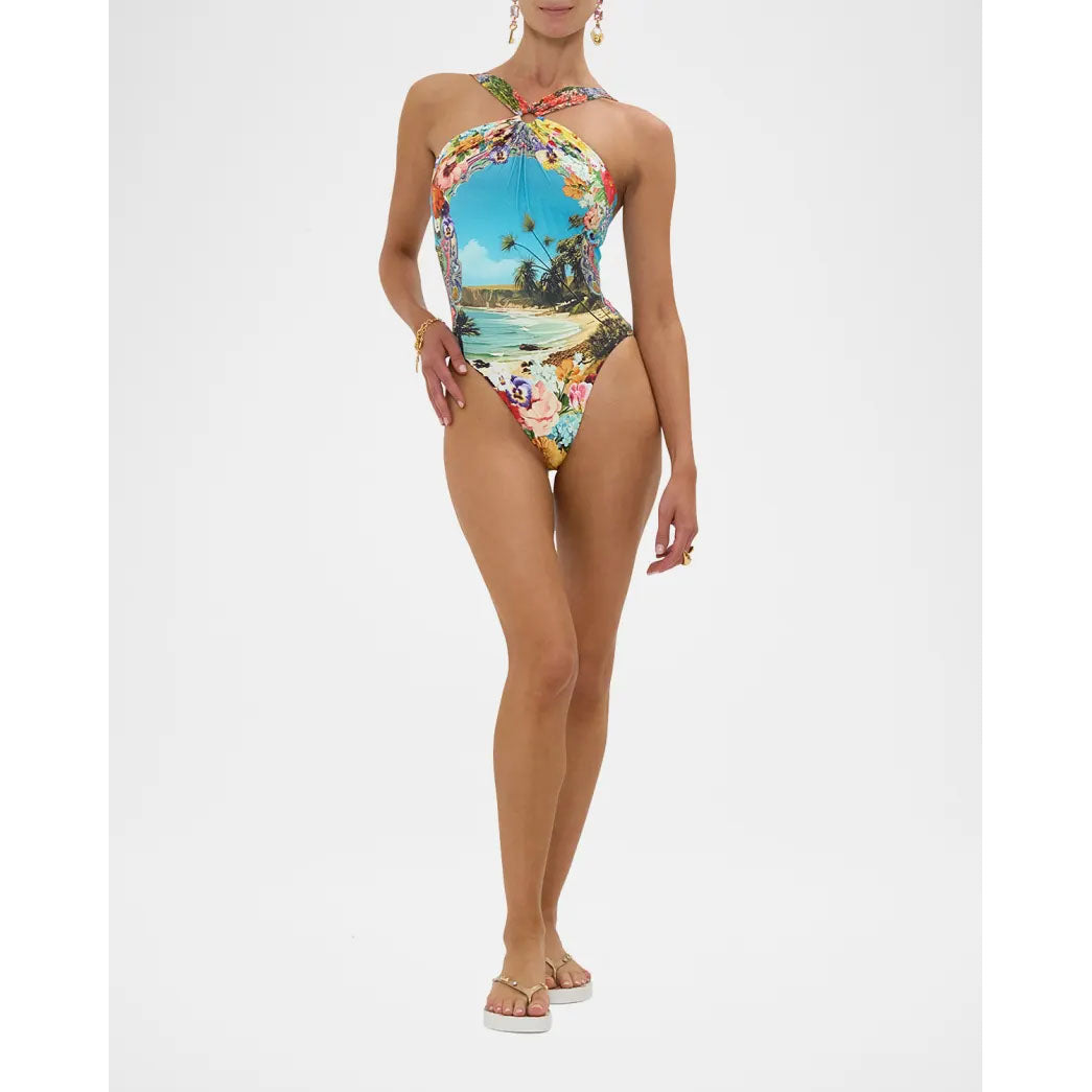 Camilla handcrafted one-piece swimsuit in vibrant Bathing Bombshell print with crystal embellishments