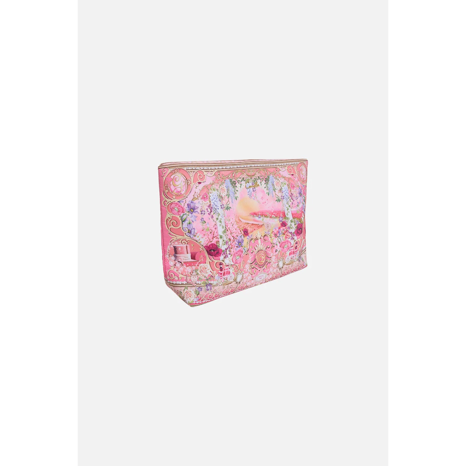Designed in Australia, The Totally Ozmopolitan Large Makeup Clutch unveils a fantastical realm where storytelling defies gravity, weaving a symphony of bubbles, butterflies, and tarot cards against a perfectly pink sky. Every detail pays homage to enchanting femininity and the gentle charm of a benevolent witch. Lovingly handcrafted, this is a wanderlust woman's essential, this luxury make up bag features a generous compartment with a secure zip top enclosure, ensuring all your precious treasures at packed to perfection