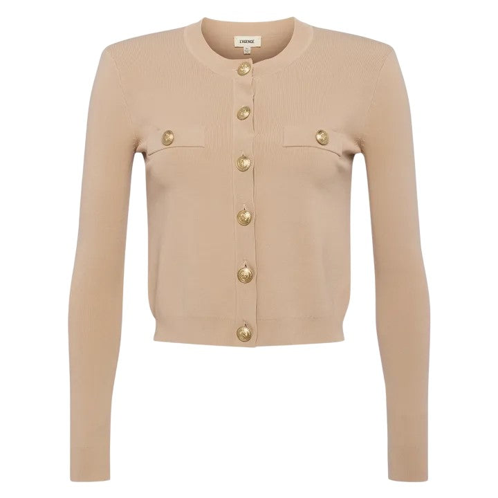 L'AGENCE Toulouse cardigan finished with embossed gold dome buttons