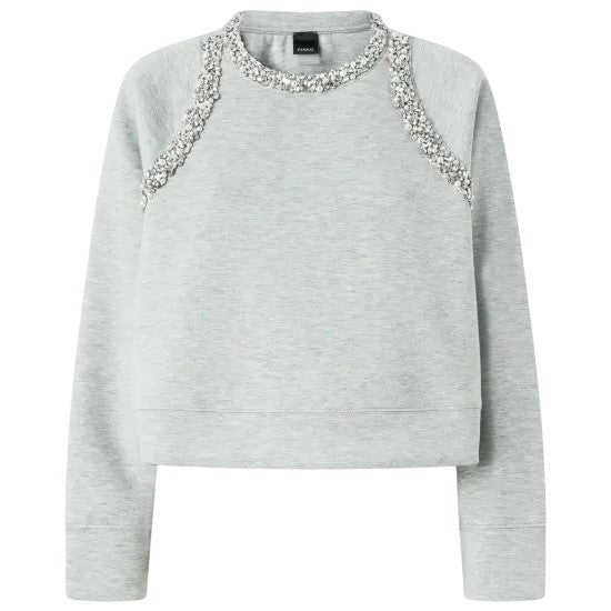Pinko- Minestra Sweatshirt with Bejewelled Appliqués